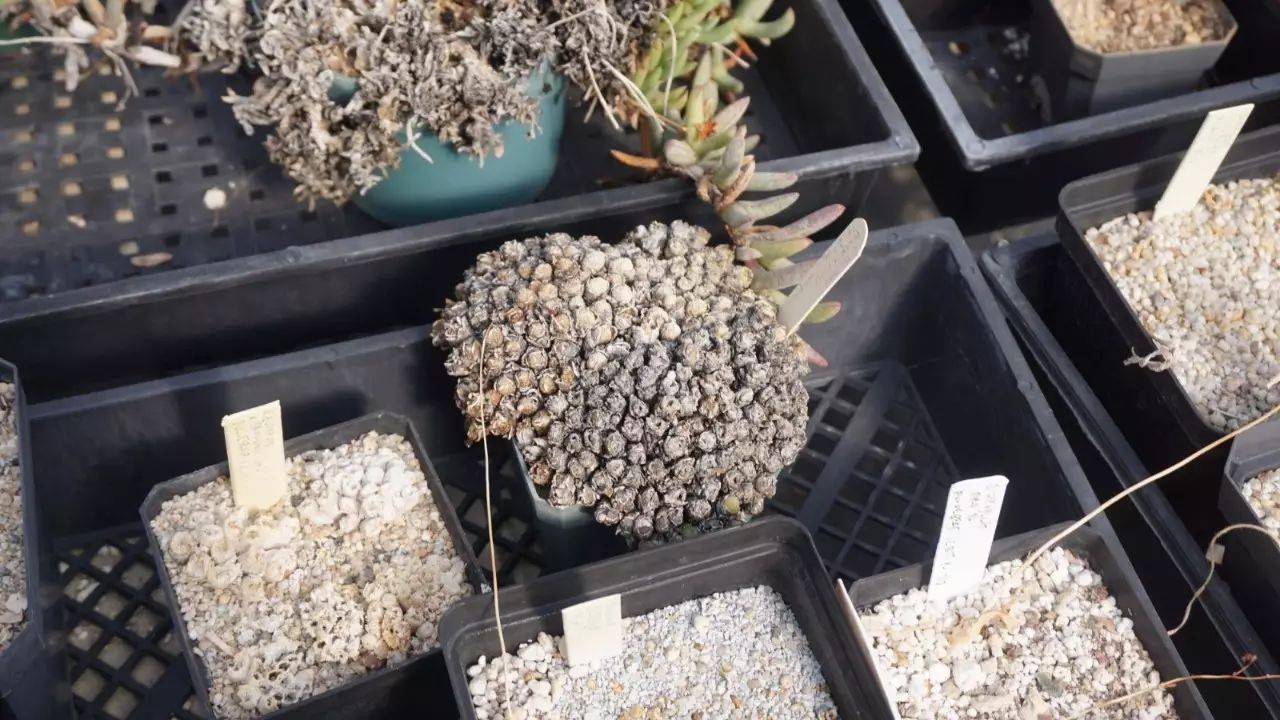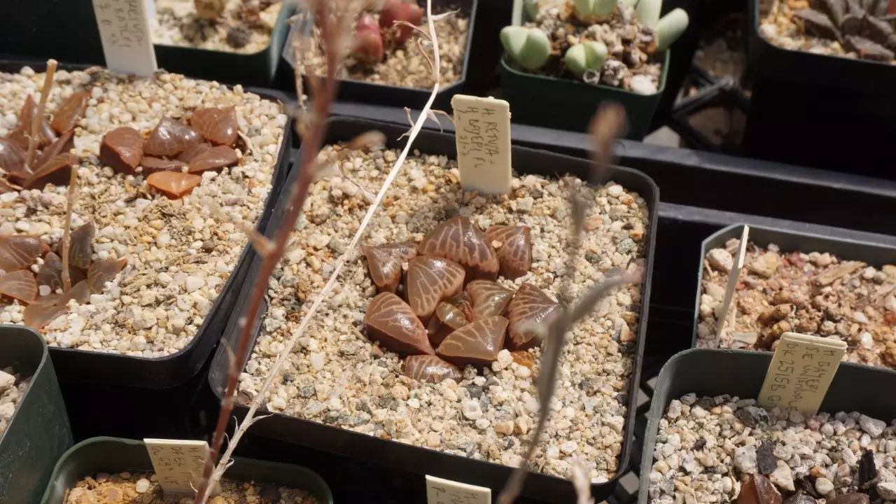 Sun:生石花的授粉和国内差别不大。肉锥有的花非常小,国内会用到猫胡须或者马鬃毛之类插入花心授粉,Steven用的是扫把上的塑料纤维。他并没有什么独家研制的授粉工具,就是一般的小毛刷,还有扫把纤维。