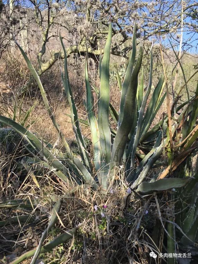 此时,在桥的南侧看到一些叶片带有一点蓝色的龙舌兰kerchovei后,我们就开始假设一个理论。