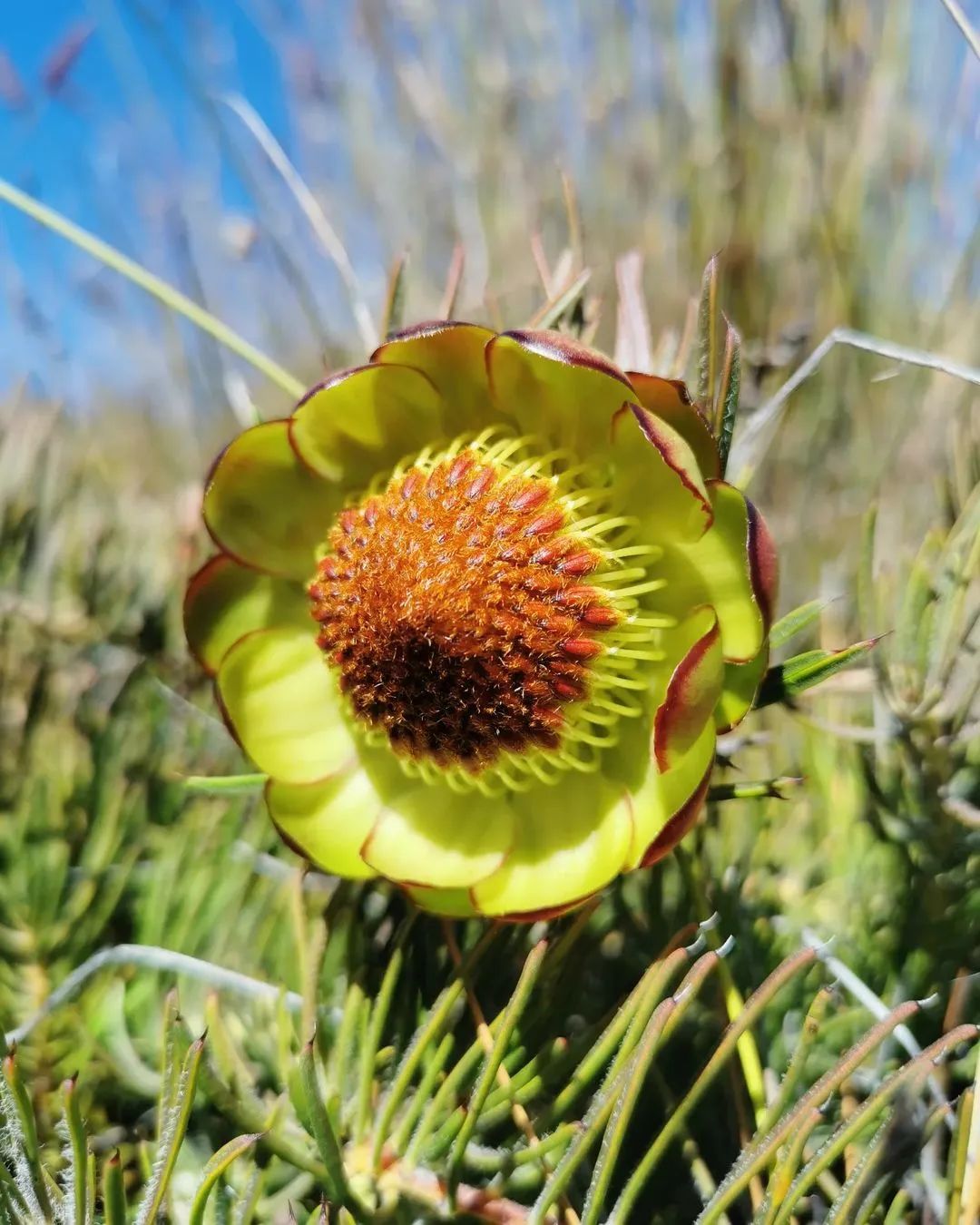 No:5 ▼Protea parvula,是南非夏季降雨草原中唯一极具代表的“地生帝王花”,它喜欢生长在酸性土壤的岩石中,在偶然性的野火中灿烂盛开。