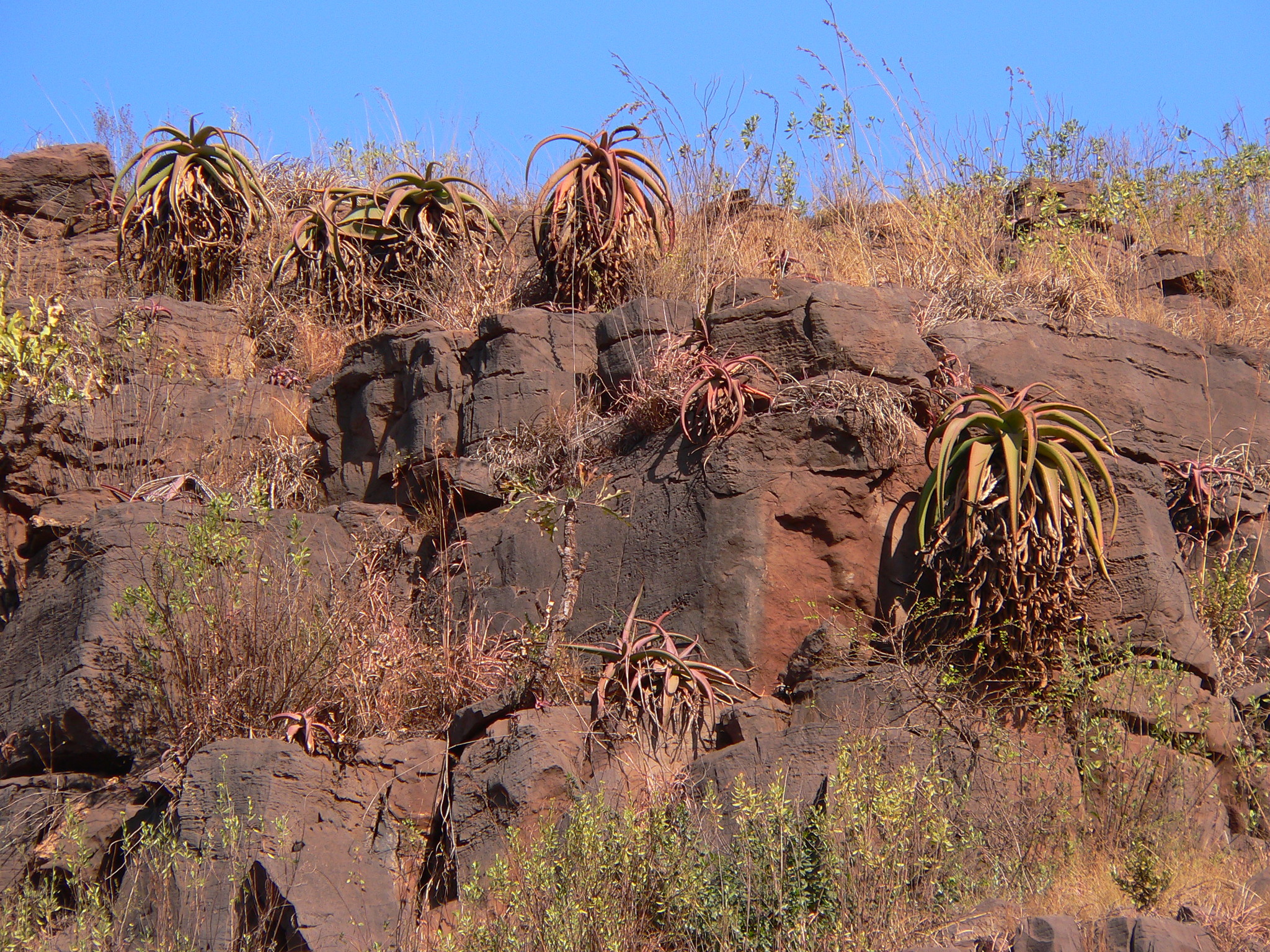 Aloe alooides 原生于南非普马兰加省(Mpumalanga,原东特兰斯瓦尔)的有限区域,主要分布在Sabie和Graskop附近的悬崖白云石露头上的浅层土壤中。它生长在海拔约1000-1500米的岩石峭壁和山地环境中,这些环境通常是夏季降雨区(年降雨量约800-1200毫米),提供良好的排水条件和充足阳光,帮助植株适应干旱和凉爽的冬季气候。在野生状态下,它常与其他耐旱植物共生,形成独特的南非本土景观,受季节性火灾保护。