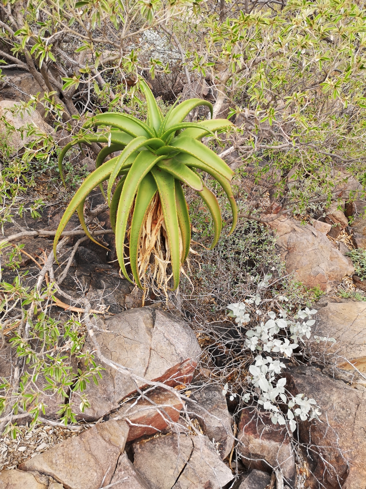 Aloe angelica 是南非北部省份Soutpansberg和Blouberg山区的特有植物,特别是索特潘斯堡山和布劳伯格山。它生长在普马兰加悬崖有限区域的白云石露头上的浅层土壤中,通常在岩石坡地、峭壁或密集灌木丛中,海拔约1000-2000米。这些环境通常是夏季降雨区(年降雨量约600-1000毫米),提供良好的排水条件和充足阳光,帮助植株适应干旱和无霜的生态位。在野生状态下,它常与其他耐旱植物共生,形成独特的南非山区景观,受季节性火灾保护。