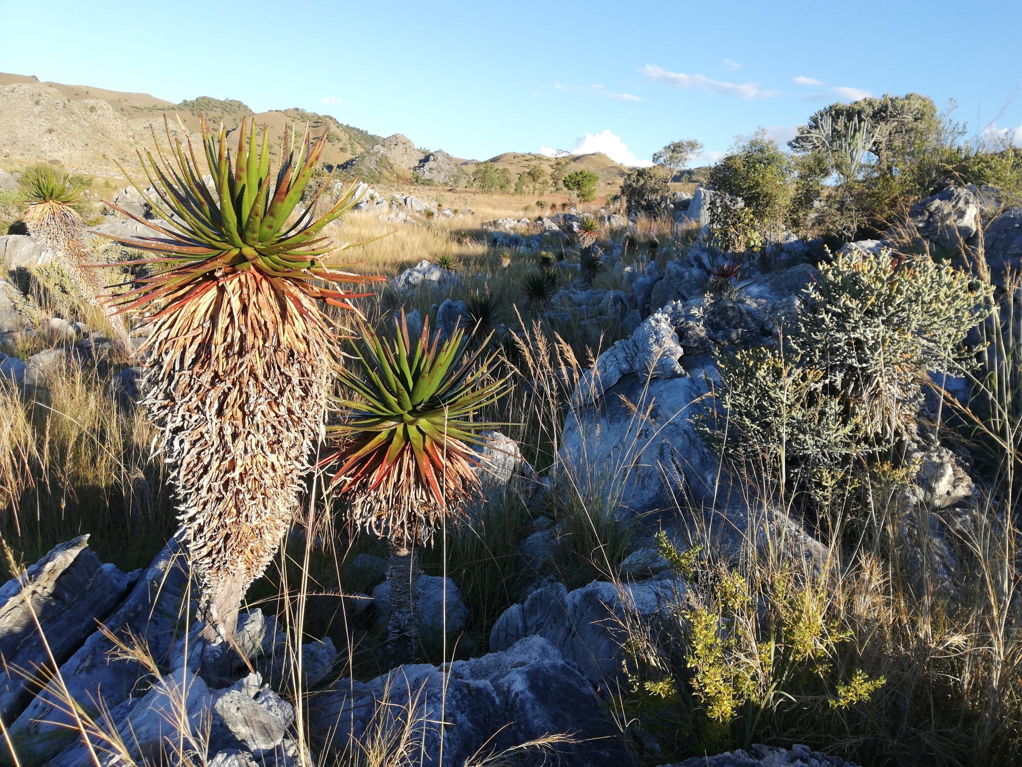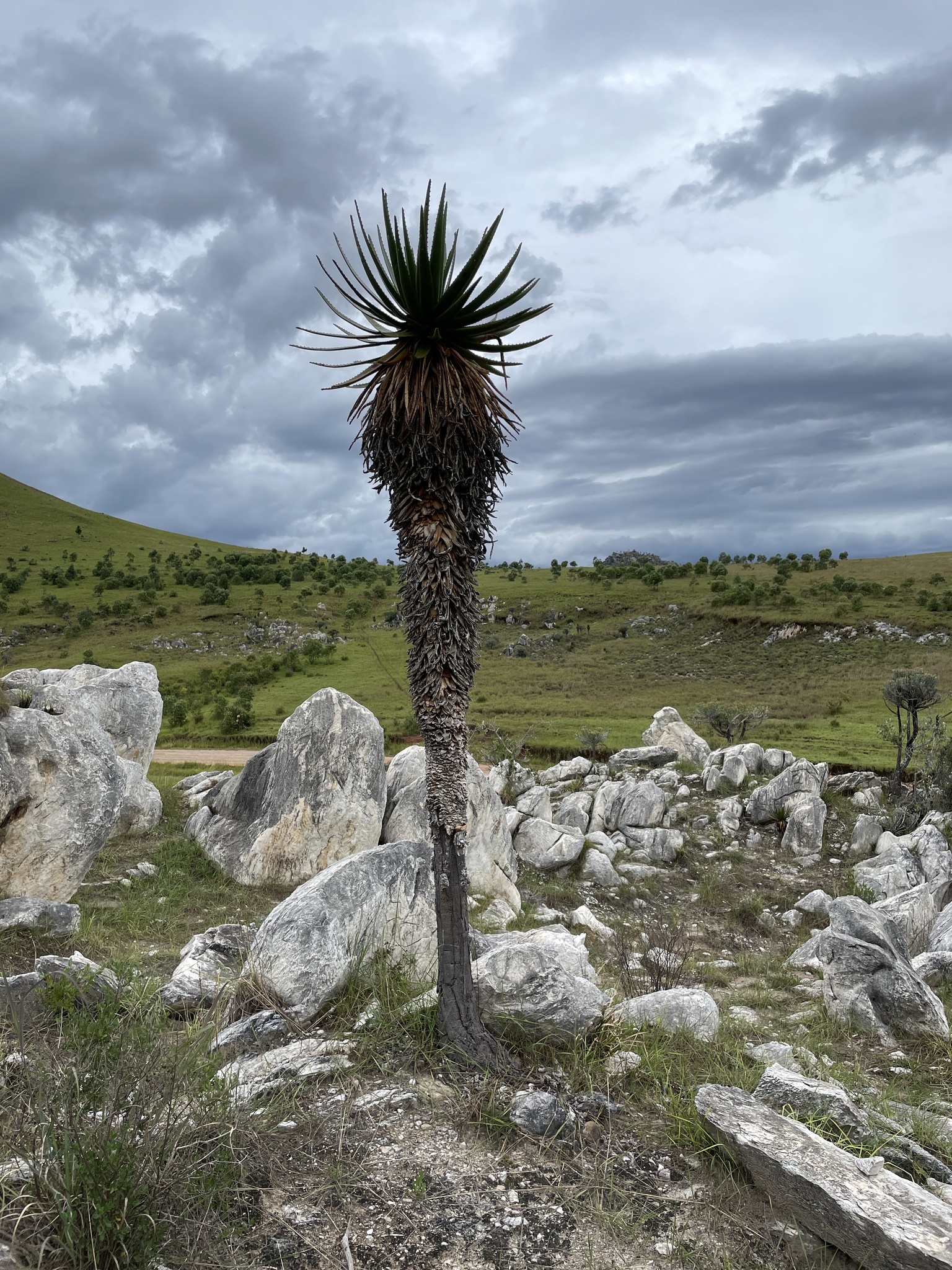 Aloe cipolinicola,又称大理石芦荟或cipolin-loving aloe,是马达加斯加中部的特有种,该物种仅生长在Ambatofinandrahana附近南部高原的“pachycaul”草原的大理石露头(Cipolin石灰岩)上。这种植物是一种大型树状芦荟,以其强壮的单茎和独特的密集圆形花序闻名,在文化中常被视为热带园艺的珍贵品种。其历史可追溯到马达加斯加本土的野生分布,最早于1931年由法国植物学家Henri Perrier作为Aloe capitata var. cipolinicola描述,但现在它被认为是一个独特的物种,如今已成为园艺爱好者和植物收藏家的热门选择,尤其因其耐火性和独特的树状形态增添景观魅力。