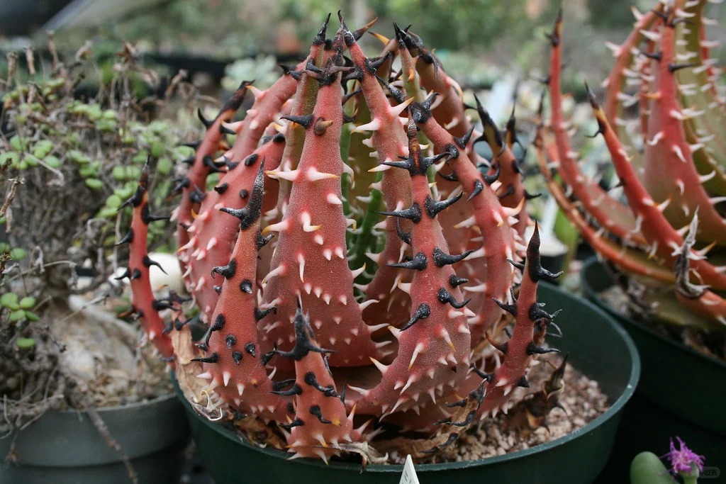 在栽培中,Aloe erinacea适合USDA耐寒区9-11,表现出色于温暖到热带气候,尤其在排水良好的环境中种植,在夏季很少浇水。建议将其种植在全日照位置(至少6小时直射光),使用排水良好的沙质土壤,如添加沙子、砾石或珍珠岩的多肉植物专用土(pH 6.0-7.5),以避免根部积水导致腐烂。浇水应偶尔进行,生长季(春夏)每2-3周一次,冬季减少至每月一次或更少,保持土壤干燥到中等湿度水平;过湿的环境会使植株敏感,甚至死亡。它对低温有一定耐受力,可耐受至约-4°C(25°F),但在寒冷地区需提供保护,如移入室内。理想温度为15-30°C(59-86°F),高温耐受性强。肥料可选稀释的平衡肥,每年春季施用一次。植物生长缓慢,适合容器栽培(盆径至少20厘米)或地面种植(间距0.5-1米)。潜在问题包括根腐(因过浇水)和虫害(如蚧壳虫),可用有机农药控制;叶片烧伤可通过渐进阳光暴露避免。总体而言,这种芦荟易于维护,是岩石花园、容器栽培或热带景观的理想选择,能为您的植物收藏带来非洲沙漠的野性魅力。