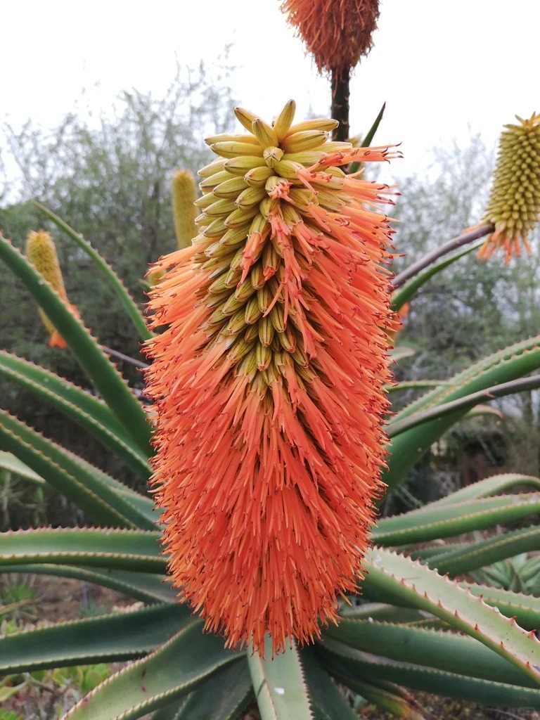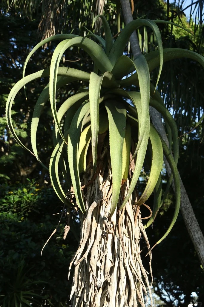 Aloe rupestris是一种大型树状多肉植物,通常可以生长到4-6米高,但当标本在提供结构支持的灌木中生长时,可以达到8米以上的高度。这种植物以其独特的烛台状花序和顽强的适应性闻名,在文化中常被视为干旱园艺的珍贵品种。其历史可追溯到非洲本土的野生分布,最早于1824年由英国植物学家Adrian Hardy Haworth描述,如今已成为园艺爱好者和植物收藏家的热门选择,尤其因其耐旱性和独特的形态增添景观魅力。该芦荟并不特有于南非,因为它也可以在斯威士兰和莫桑比克南部找到。