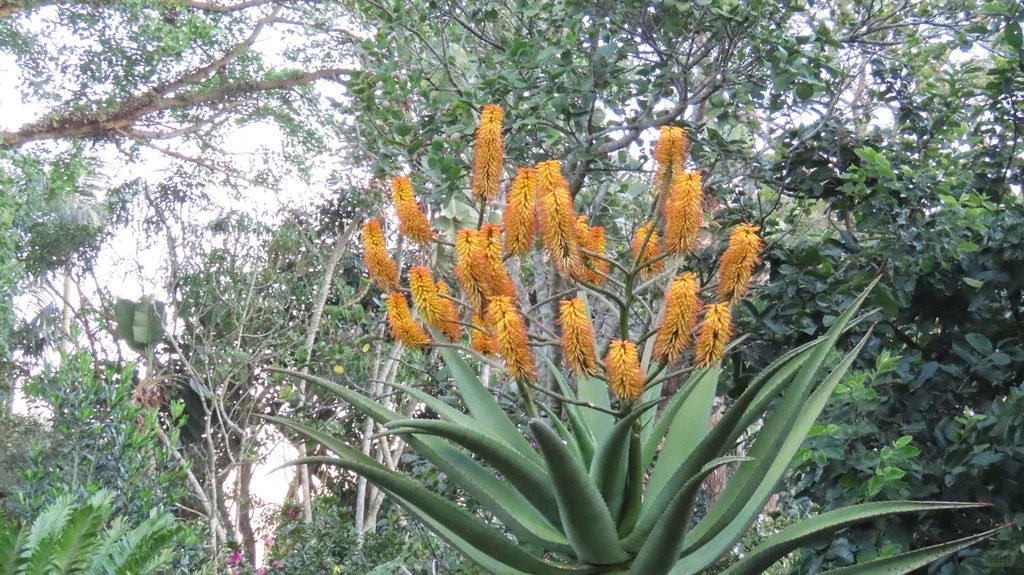 Aloe rupestris通常可以生长到4-6米高,但当标本在提供结构支持的灌木中生长时,可以达到8米以上的高度。暗绿色的叶子光滑、简单,呈矛状,向垂直方向伸展,在顶端有点下垂。叶子在横截面上形成U形。在叶子的莲座头下面将有一层干叶,这些干叶在植物上可以保留很长时间。叶缘衬有红棕色,有锯齿。烛台状聚伞花序长在叶子的莲座状丛的上方。花茎从生长点或叶子的基部向顶部生长,并携带一个分枝的聚伞花序,最多可达18个平顶、圆柱形的头状花序,每个头状花序由许多紧密排列的黄色到棕橙色花朵组成,花蕊从花口伸出,呈鲜红色橙色。花期在晚冬至早春。种皮裂成三瓣;当种皮开裂(自然打开以释放种子)时,种子成熟。该芦荟并不特有于南非,因为它也可以在斯威士兰和莫桑比克南部找到。在南非,它们在夸祖鲁-纳塔尔省东南部地区自然生长。它们通常生长在在无霜的岩石和丘陵,山脊和斜坡,灌木丛和沿海沙树林。这些地区经历炎热多雨的夏季和温和无霜的干燥冬季。属名源自希腊文“aloe”,源自更早的闪米特语“alloeh”,意为“苦”,指的是叶子中发现的苦味液体或干果汁。种加词“rupestris”意为“生长在多石的地方”,指的是它自然生长的栖息地。与大多数单头芦荟一样,这种芦荟不产生侧芽。因此,通过扦插繁殖芦荟是不可行的,除非莲座丛头断开,只留下可以生根的莲座头和可以从节上再发芽形成新莲座叶的主干。微繁殖是一种选择,但需要特殊的设施。最成功和首选的方法是通过种子繁殖。在排水良好的基质中播种,基质中要有有机质。为了获得最佳效果,基质中1份是壤土,1份是河沙,1份是细磨的腐烂的堆肥。将育苗混合物填满育苗盘,将基质整平以确保均匀生长,将种子均匀地撒在基质上,并用一层土壤覆盖种子,厚度是种子大小的两倍。将种子放在光照充足的地方,并充分浇水,确保湿润,但不要过度浇水,以免引起猝倒病。应让种子发芽和成熟,直到可以移植到花盆中或直接种植在花园中。从种子长成一棵成熟的芦荟,芦荟幼苗的生长速度非常缓慢,需要几年时间才能长成适合种植的芦荟。最常见的害虫是长鼻象鼻虫、软褐粉蚧和白粉虱。这种芦荟在炎热的天气里茁壮成长,可以承受轻微的霜冻。花朵吸引喜欢花蜜的鸟类、蜜蜂、蝴蝶和其他昆虫,以及吃昆虫的鸟类。植株整体呈常绿形态,生长速率缓慢,需要多年才能成熟开花。果实为蒴果,种子小而扁平