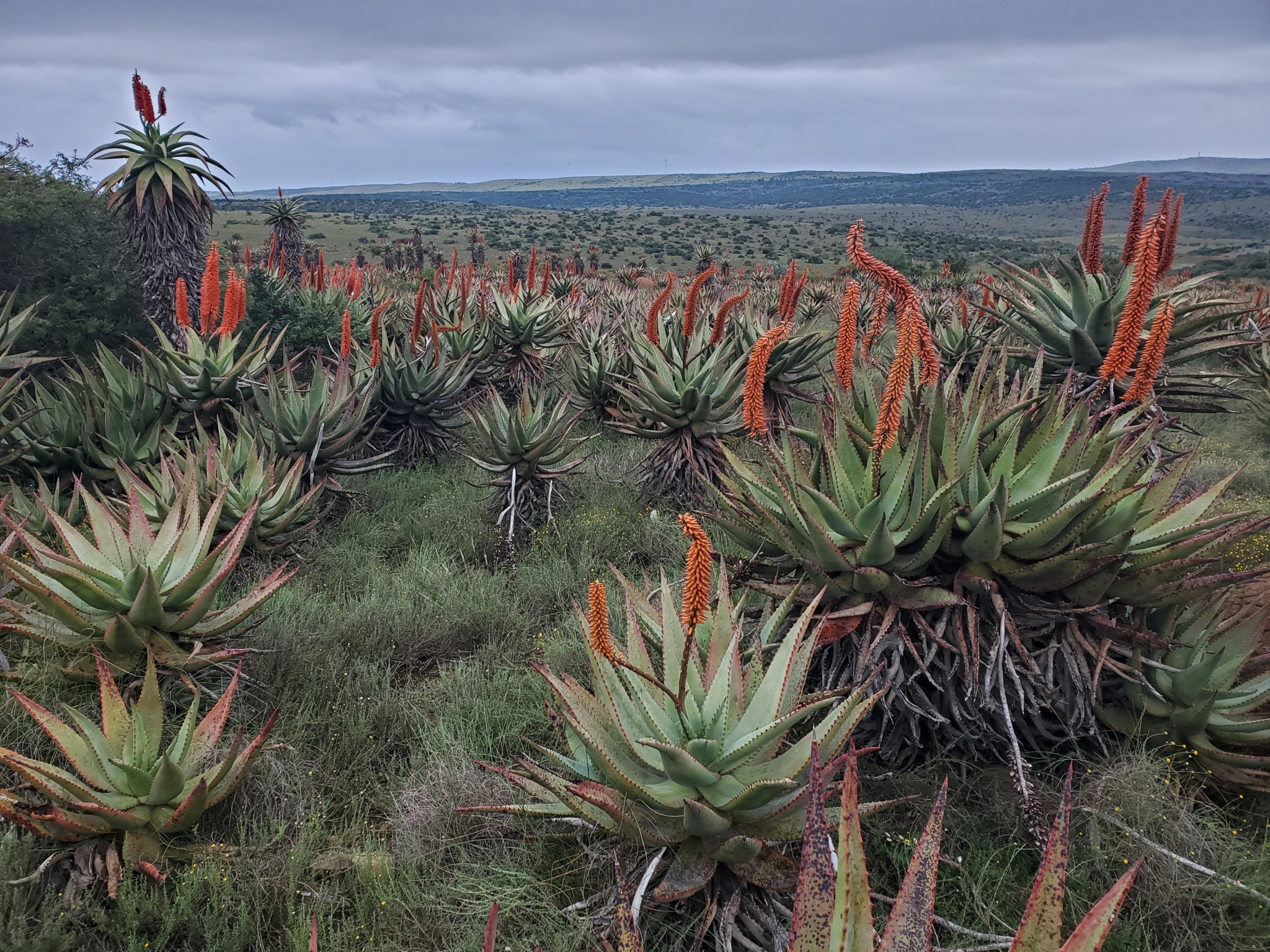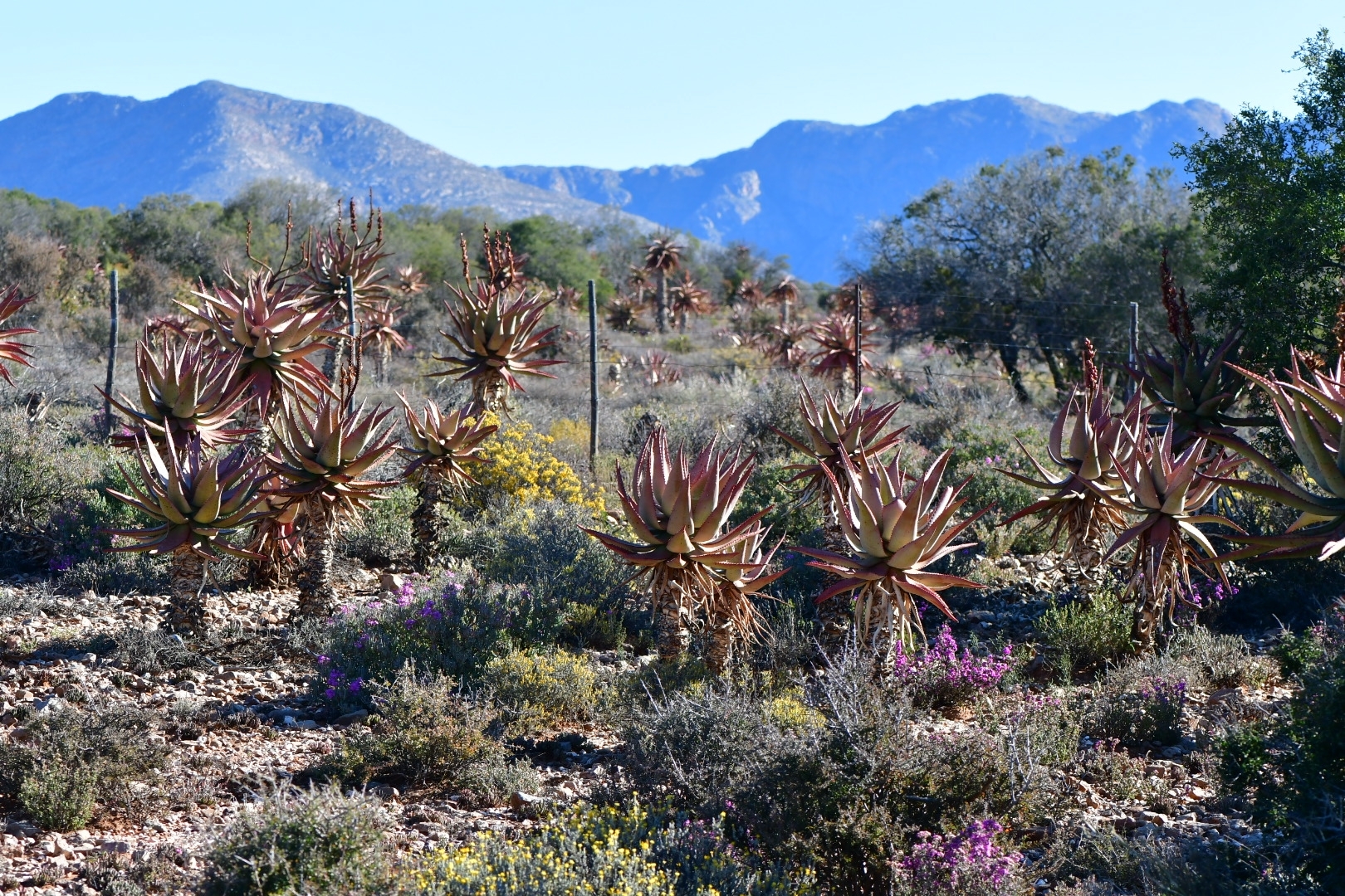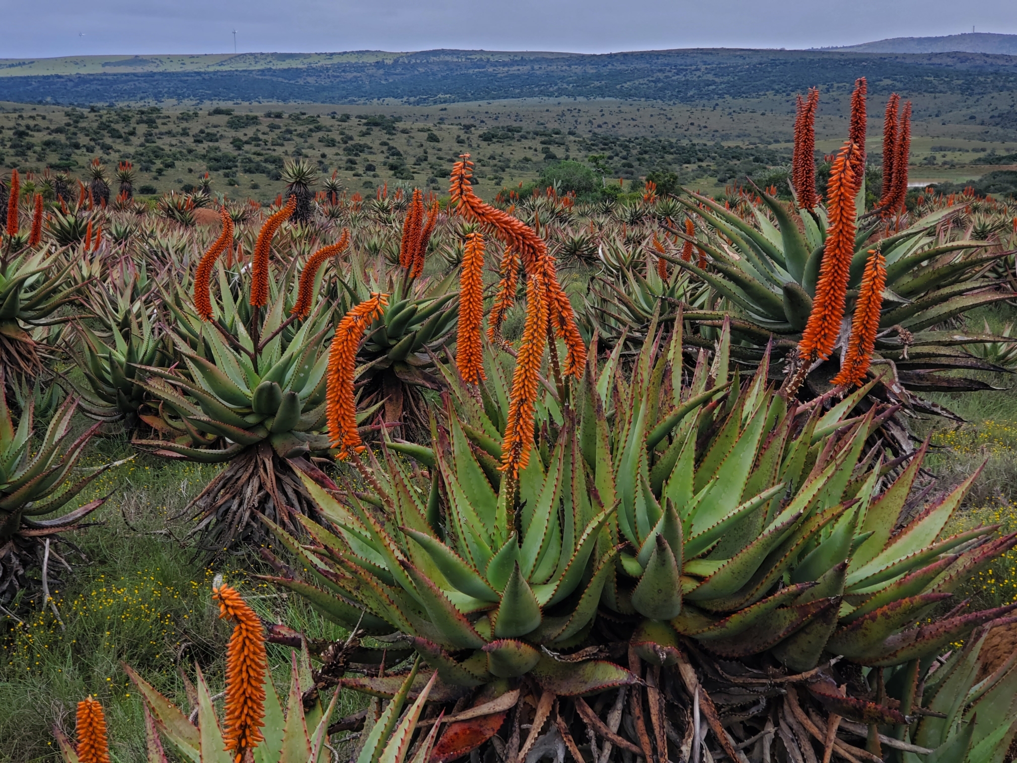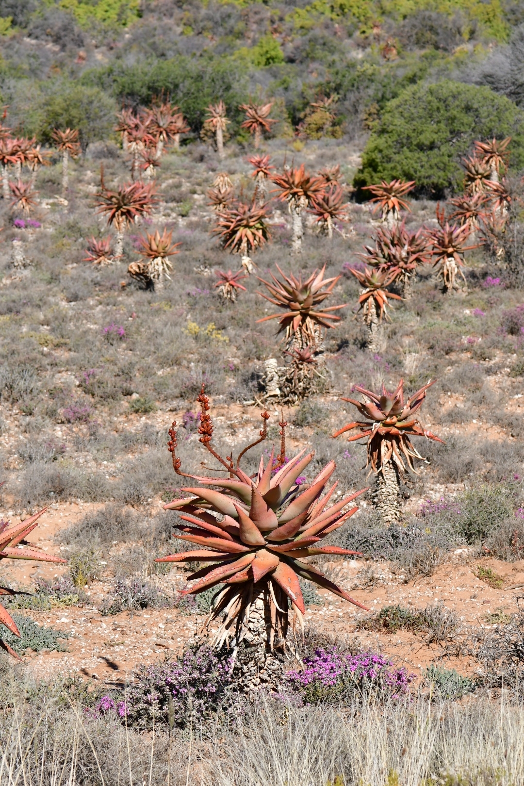 Aloe ferox分布范围广泛,从开普敦西南部到夸祖鲁-纳塔尔省南部,范围超过1000公里。它也分布在自由邦的东南角和莱索托南部。由于分布范围广,它在岩石山坡上很常见,通常数量非常多,在那里它创造了一个令人惊叹的景观。在开普省西南部,它生长在草丛中,在开普省南部和东部,它也可能在卡鲁的边缘找到。既生长在开阔的地方,也生长在灌木丛中。由于当地条件,这些植物也可能因地区而异 – 自由邦东南部的冬季与东开普省海岸的冬季完全不同!这些环境通常是夏季降雨区,提供良好的排水条件和充足阳光,帮助植株适应干旱和高温的生态位。在野生状态下,它常与其他耐旱植物共生,形成独特的非洲景观,受季节性火灾保护。
