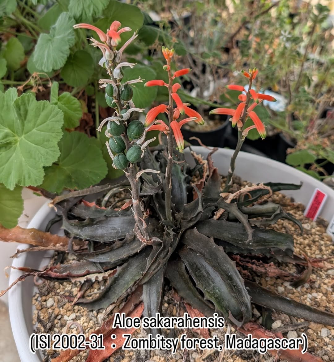 Aloe sakarahensis是一种马达加斯加特有芦荟属植物,原产于该岛南部地区。它最初于2004年由Lavranos & M. Teissier描述,现被分类为Aloe zombitsiensis subsp. sakarahensis (Lavranos & M.Teissier) Klopper & Grace,是浆果芦荟组(berried aloes)的一员,与Aloe prostrata密切相关。该种以其浆果状种子荚和粉红色花朵而闻名,作为一种多肉多年生植物或矮生植物(chamaephyte),它适应季节性干燥的热带环境,植株整体紧凑,适合作为观赏植物,但其濒危状态要求栽培时优先使用合法来源的种子或苗木,以避免进一步威胁野生种群。别称包括浆果芦荟,曾经属于Lomatophyllum属。