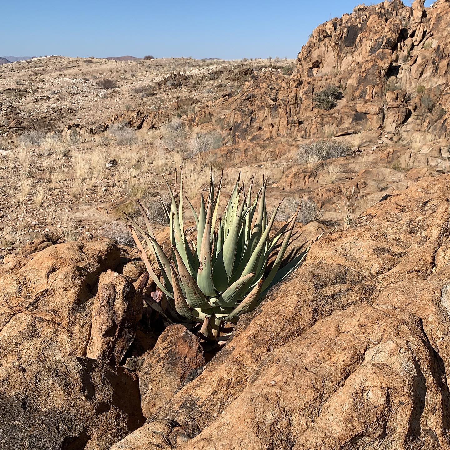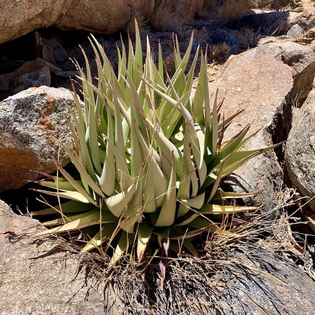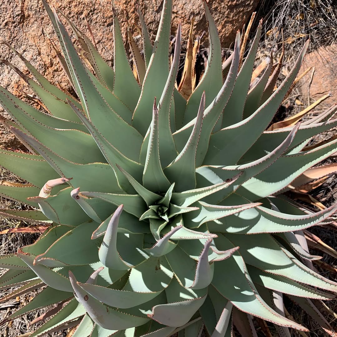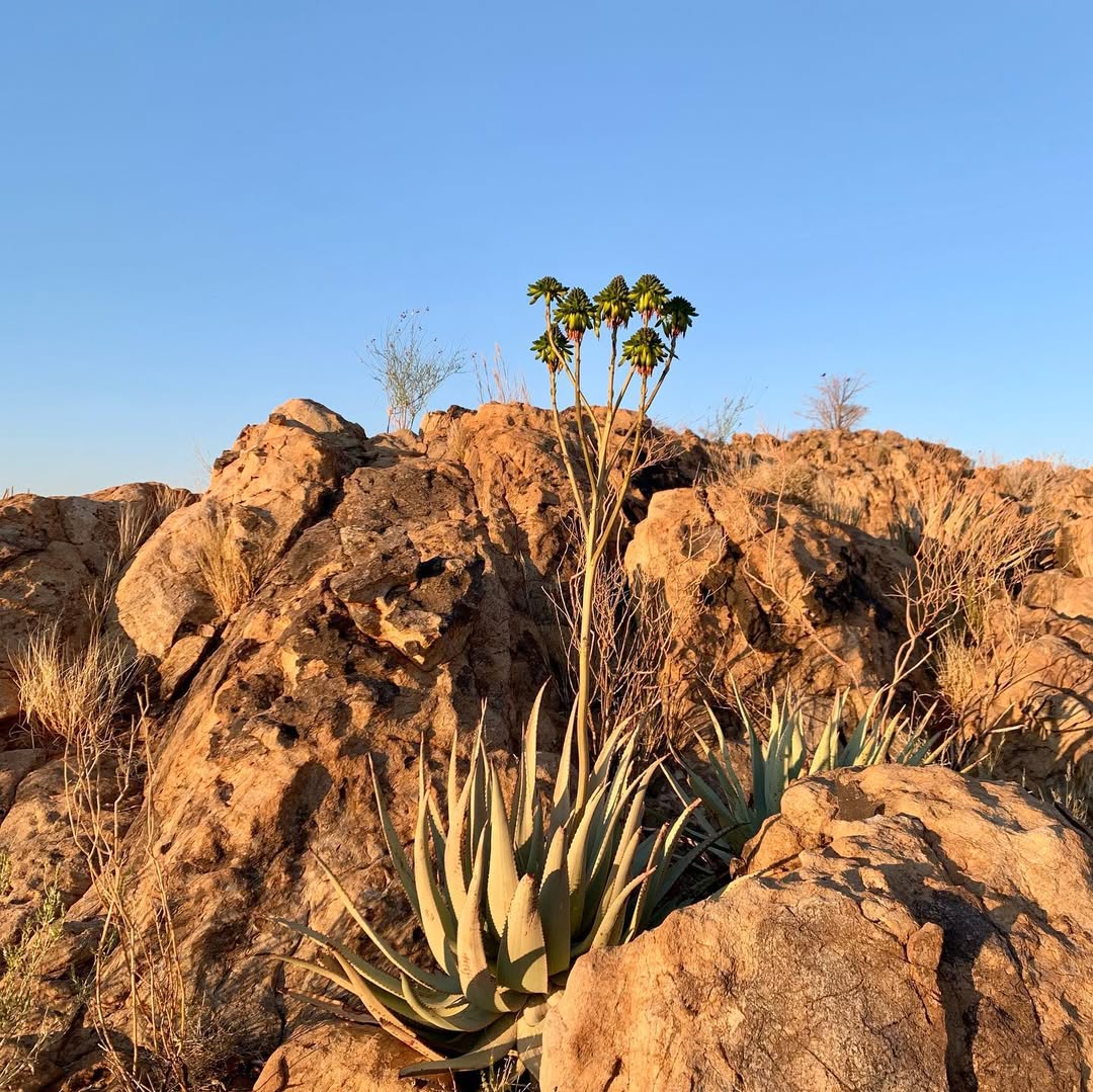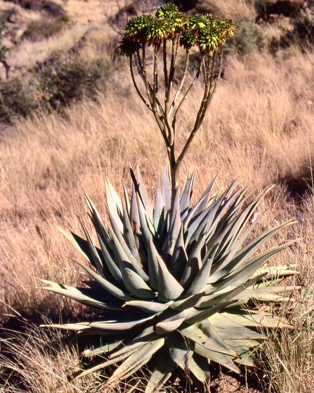 Aloe viridiflora是纳米比亚的特有种,主要分布在干燥稀树草原(dry savanna)、热带干灌木丛(subtropical or tropical dry shrubland)和岩石区(rocky areas),海拔范围从低地到中等高度。该种生长在沙漠或干旱灌木丛生物群落中,偏好排水良好的砂质或石质土壤,受季节性雨季影响,年降雨量约200-500毫米,旱季漫长,温度在15-35°C之间波动。它常与当地其他多肉植物共生,形成局部生态系统,分布范围广泛(发生范围>20,000 km²),至少有六个已知种群,但种群密度较低。野生植株多见于难以接近的山区,避免人类干扰。