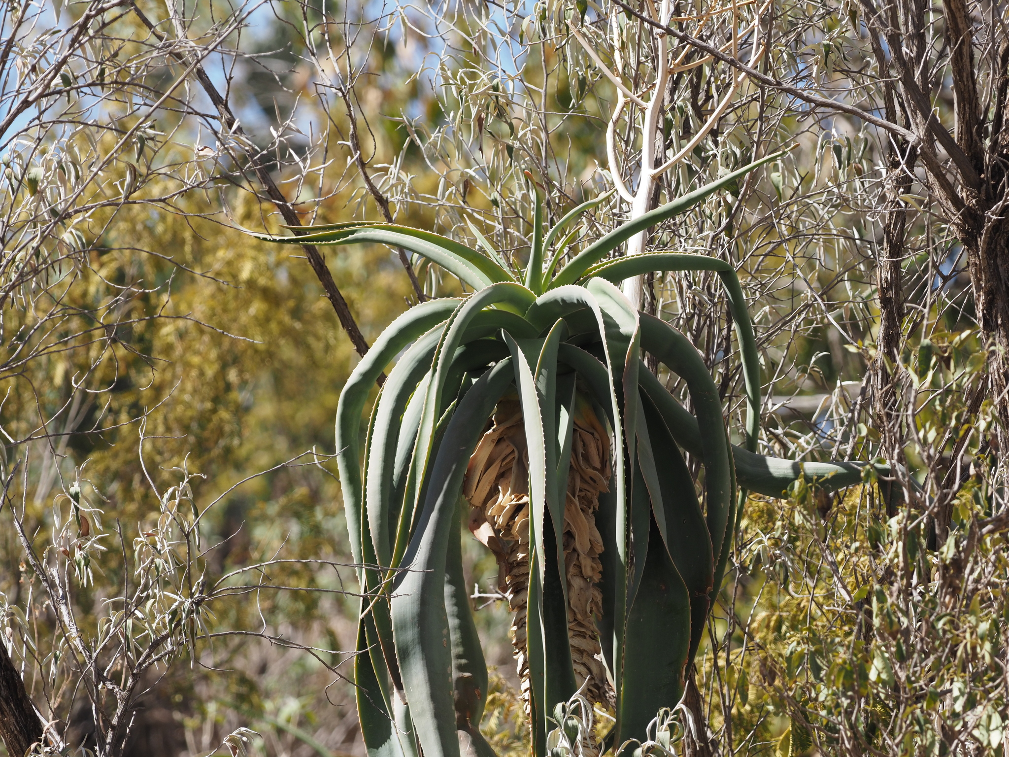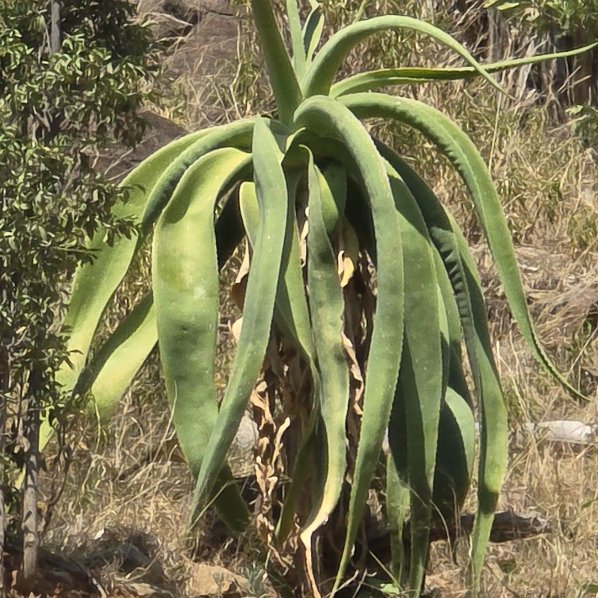 Aloe sabaea适合作为景观或盆栽观赏植物,其独特下垂叶片和树状形态受欢迎,尤其适合干燥花园或作为焦点植物。作为耐旱植物,其养护相对简单:置于全日照环境中(6-8小时直射阳光),使用排水良好的沙质或岩石土壤(pH 6.0-8.0)。浇水原则为“干透浇透”,旱季减少至每月1-2次,生长季适度增加,但避免积水。肥料可选稀释的多肉肥,每月一次春夏。耐寒性中等,最低耐受温度约-1°C(USDA Zones 9-10),吸引鸟类和蝴蝶,耐鹿。常见问题包括根腐(需良好通风)和虫害如粉蚧,可用生物农药控制。繁殖通过种子(发芽需温暖湿润,2-4周)或扦插,生长缓慢。每2-3年换盆一次。虽无广泛药用记录,但其叶胶可能有类似Aloe vera的抗炎潜力,主要用途为园艺观赏,能吸引传粉者和鸟类。在生态系统中,它有助于干燥栖息地稳定和生物多样性。