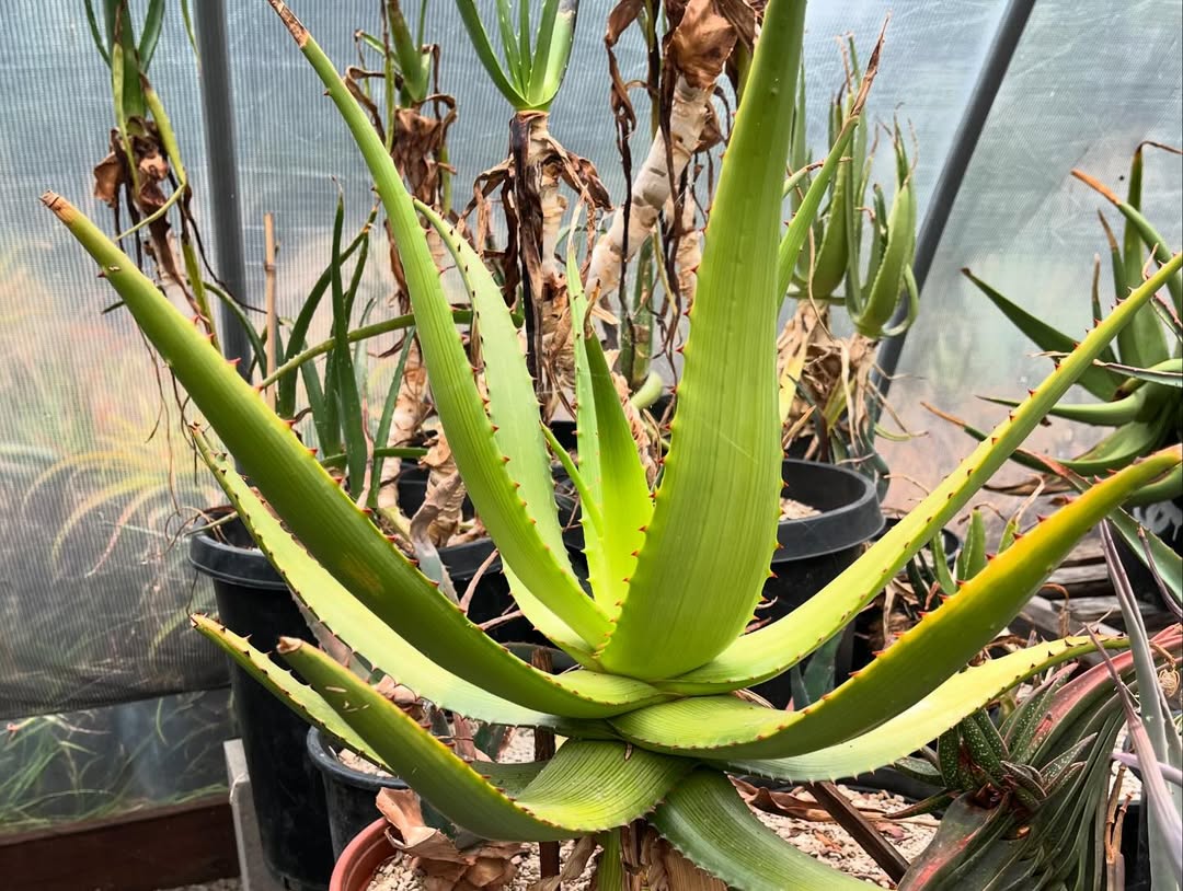 是一种稀有的南非特有芦荟属植物,原产于西开普省的Doorn River Valley地区。它是一种灌木状、上升生长的芦荟,以其光滑的绿色叶片和春季的黄色花朵而闻名,于2010年由Ernst van Jaarsveld正式描述。该物种生长缓慢,长寿,具有密集的直立灌木形态,多头丛生,适合作为观赏植物,但由于分布范围狭窄,需要注意保护。