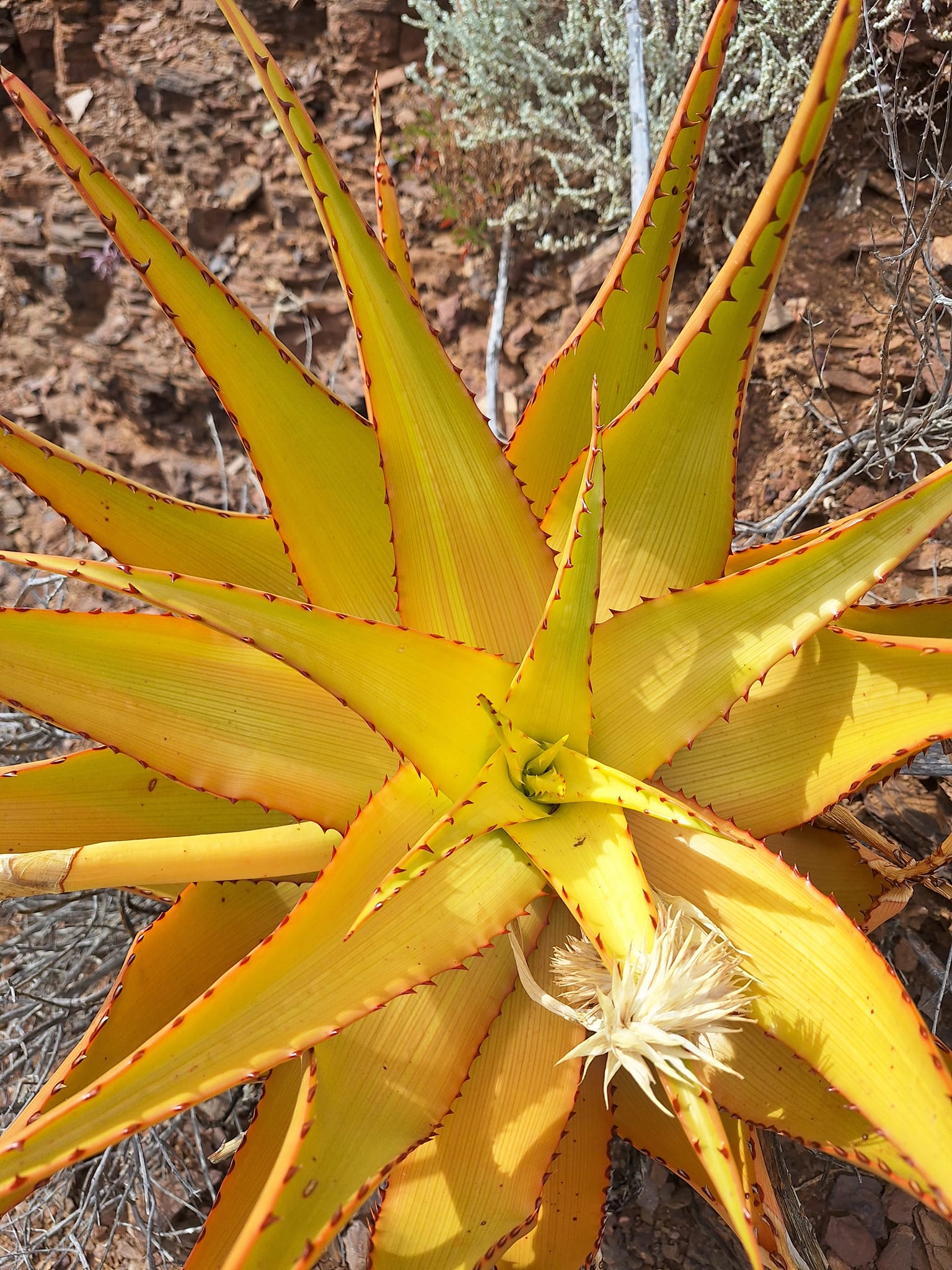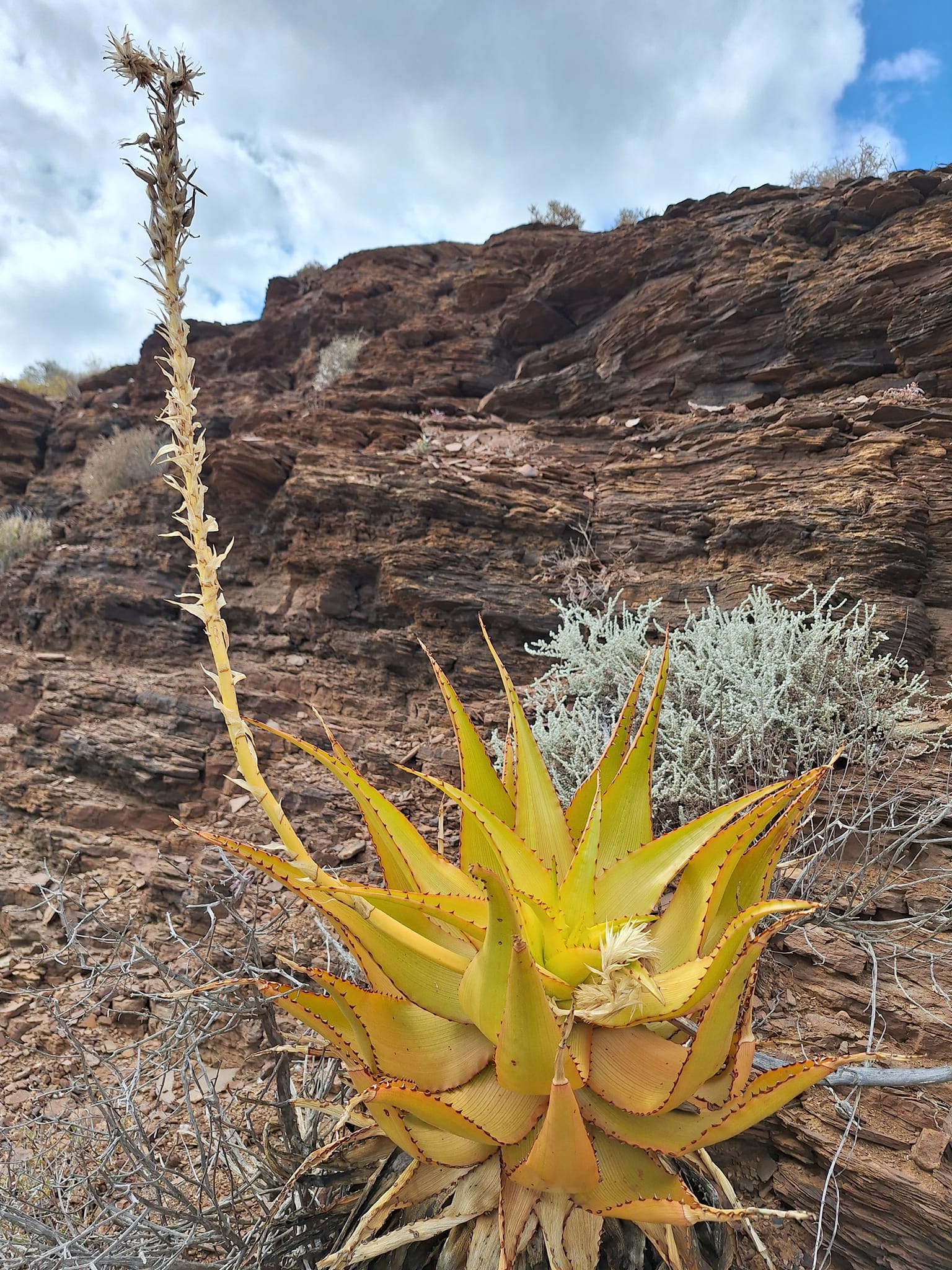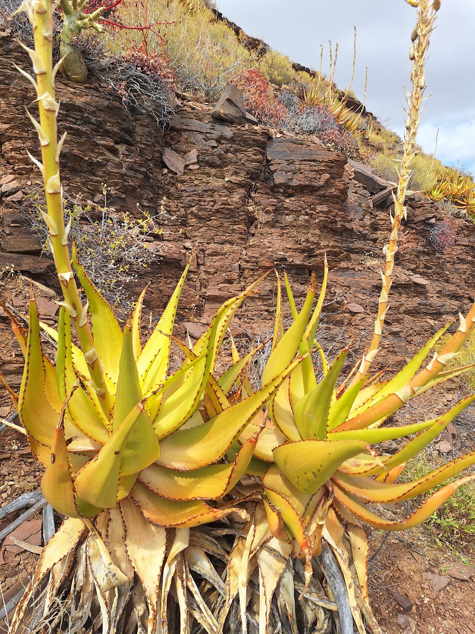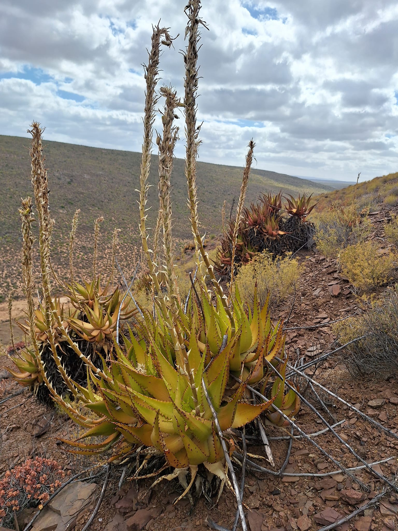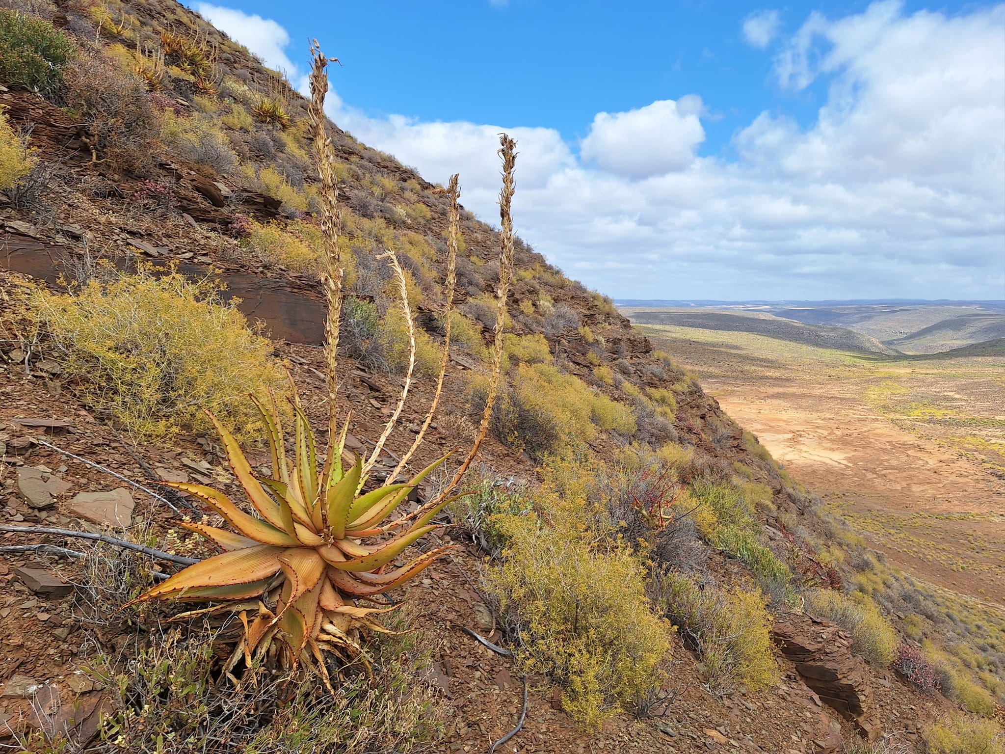 Aloe kamnelii是南非的特有种,主要分布在西开普省的Doorn River Valley,位于Gifberg Mountain和Cederberg Mountains之间,以及Olifants River Valley附近的Trawal地区。分布范围狭窄,发生面积(EOO)仅27平方公里。该种生长在干燥的北向岩石页岩坡地、悬崖和石质露头,属于Doringrivier Quartzite Karoo生态系统。这些栖息地为干燥喀鲁类型,土壤贫瘠、排水良好,海拔约250-300米。植株常出现在陡峭坡面,受季风影响,雨季短暂,旱季漫长,与其他喀鲁多肉植物共生。