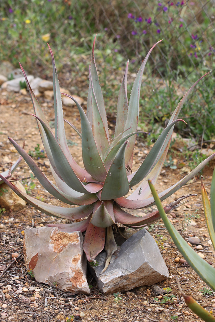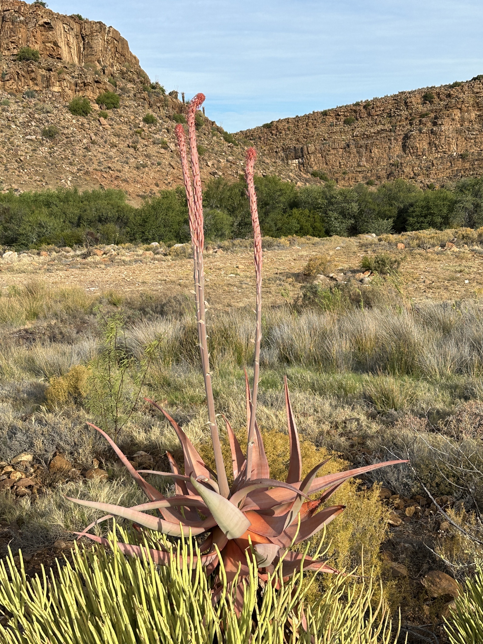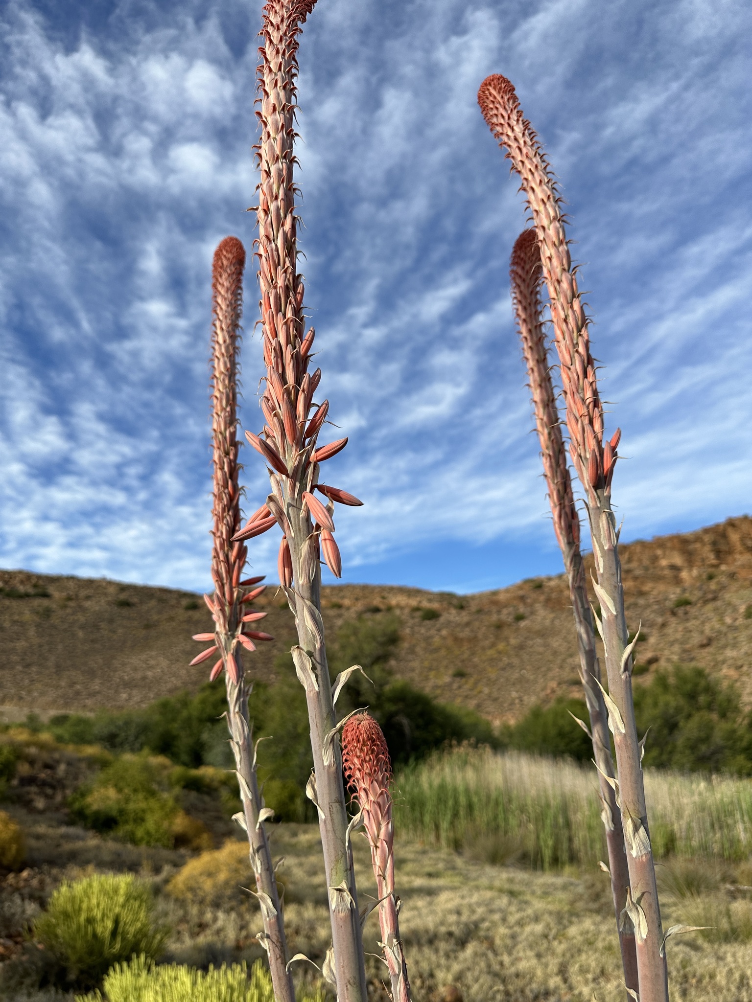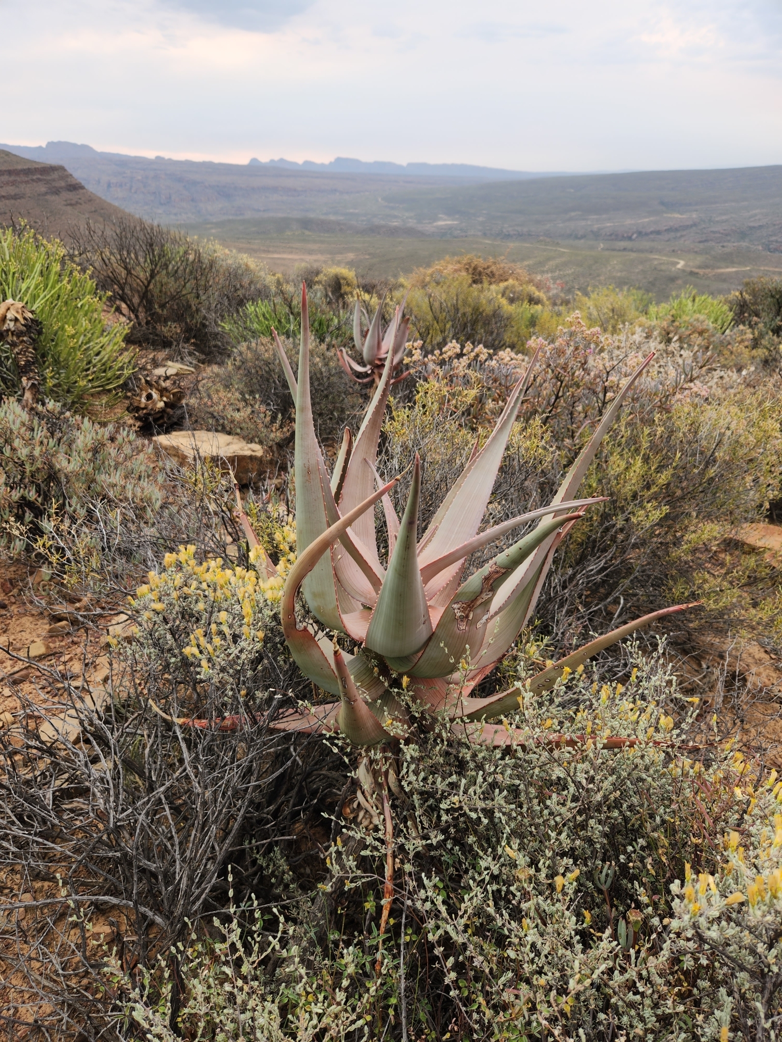 Aloe comosa是南非的特有种,主要分布在西开普省的Olifants River Valley,位于Clanwilliam以北,延伸到Cederberg Mountains附近。该种生长在非常干燥、多岩石的地方,如岩石砂岩斜坡、岩石山谷和平坦的石质地面,海拔约300-600米(1,000-2,000英尺)。这些栖息地为干燥喀鲁类型,年降雨量低(约200-400毫米),主要集中在冬季,土壤贫瘠、排水良好,常与Cotyledon或其他多肉植物共生,形成小群落。分布范围受限,发生面积(EOO)约5,051平方公里,种群密度低,但局部健康。