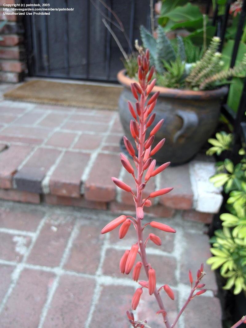 花序直立且具有硕大的圆柱状穗序,花色为珊瑚红至红色管状花,花被片基部较狭、顶部略扩展(标准 A. imalotensis 形态)。