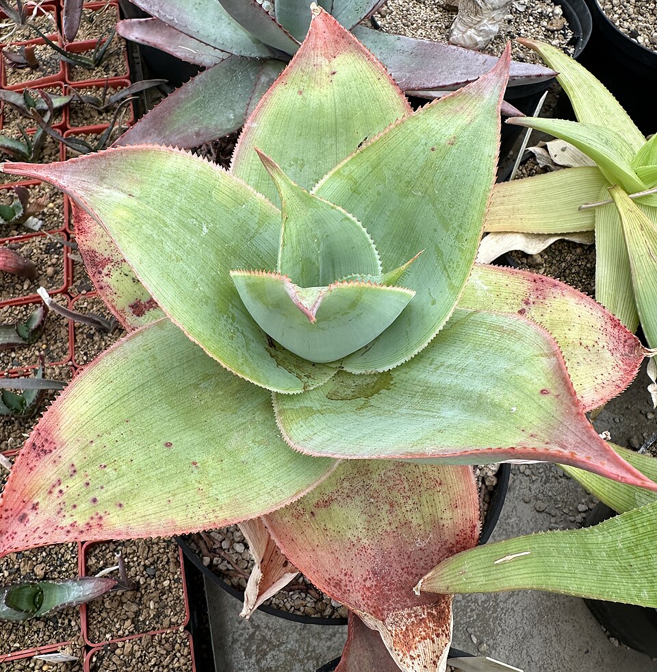 叶片为肉质、灰绿色并略带红色调,叶形介于披针形至卵状披针形之间。