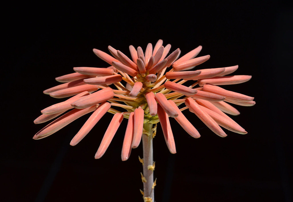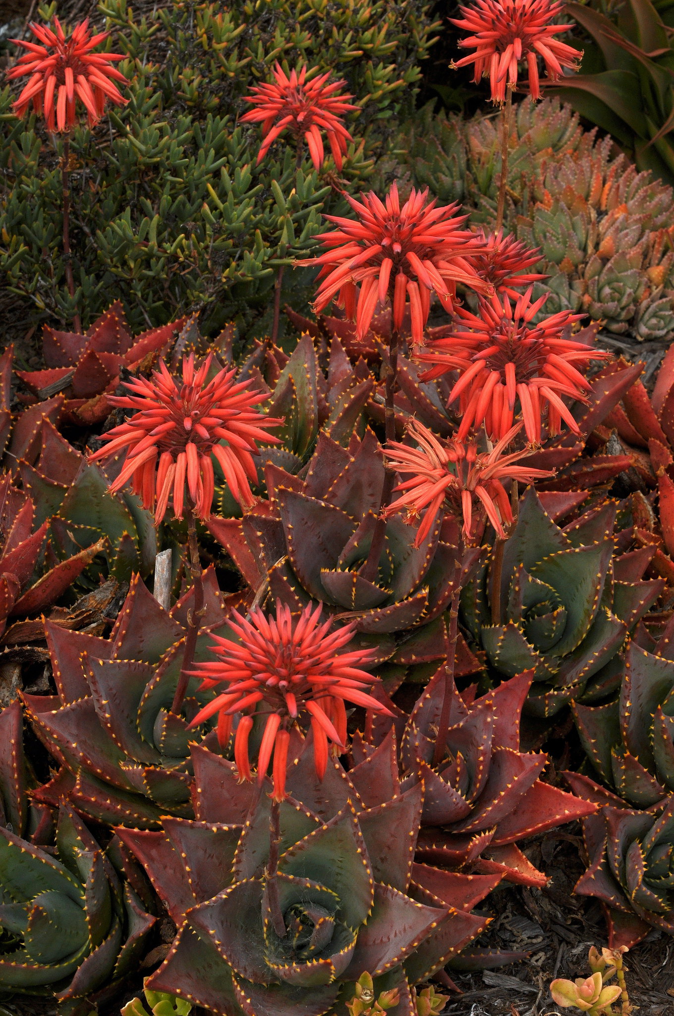 是一种南非西开普省特有的爬行型芦荟属植物,以其长而柔软、呈三角形的叶片和鲜艳的珊瑚红色至橙红色花朵而深受园艺爱好者喜爱。它是典型的“mitriformis群”(mitriformis complex)成员,常与Aloe mitriformis、Aloe ciliaris、Aloe comptonii等混淆,但可通过茎明显匍匐、节间长,叶片较小且排列疏松,花序短而密集,花色更偏橙红等特征快速区分。该物种于1804年由Adrian Hardy Haworth首次描述,原产于沿海石英岩或砂岩坡地,常作为低矮地被植物或悬挂植物栽培,是耐旱、耐火、耐寒的优秀景观物种。