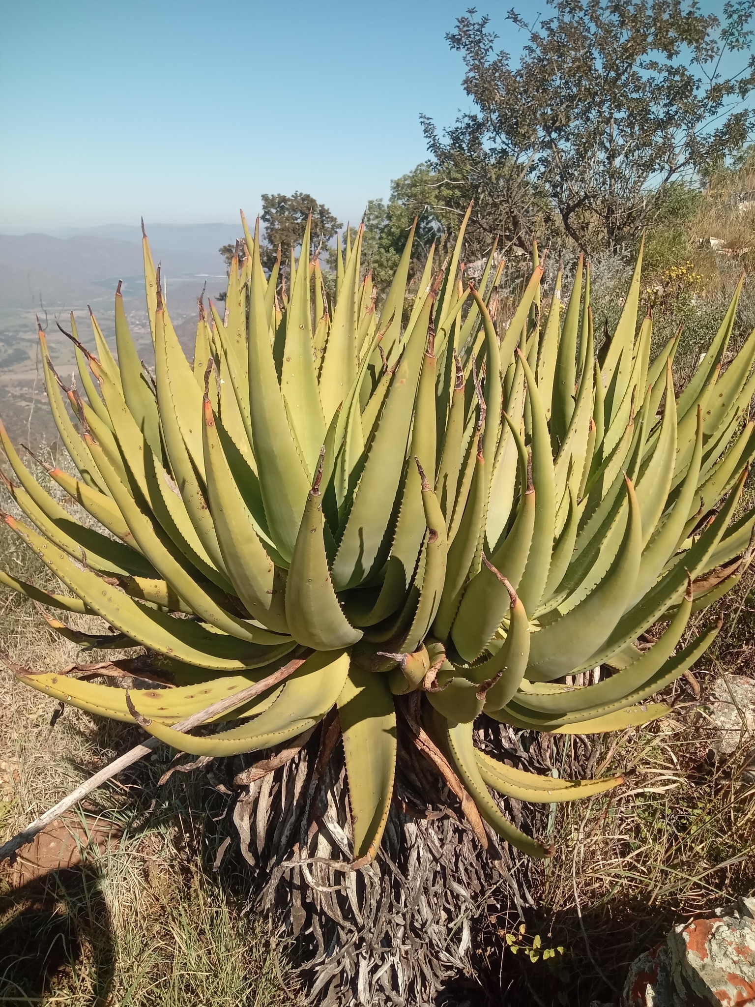Aloe castanea主要分布在南非东北部的林波波省、Mpumalanga省和Gauteng省,延伸到Eswatini、Botswana、Zimbabwe和Mozambique的灌木丛(bushveld)植被中,海拔约500-1600米。该种生长在岩石坡地、开阔季节性洼地或砂质土壤上,阳光充足、排水良好,年降雨量约500-800毫米,主要集中在夏季,旱季漫长高温。植株常出现在混合开放林地或草原,与Mopane树或其他耐旱植物共生,形成局部生态系统。分布范围较广,但局部丰度高。