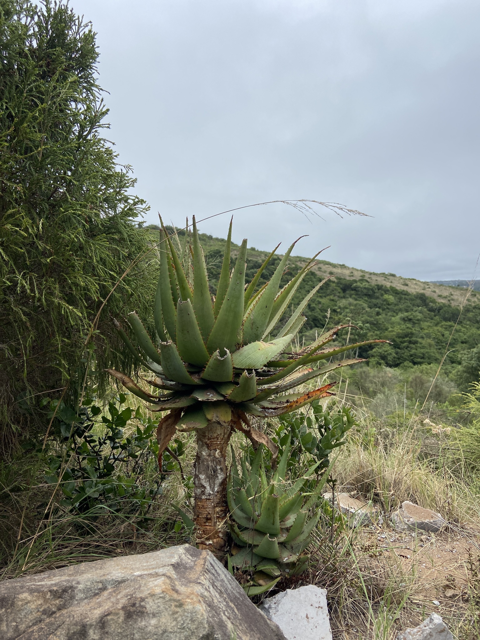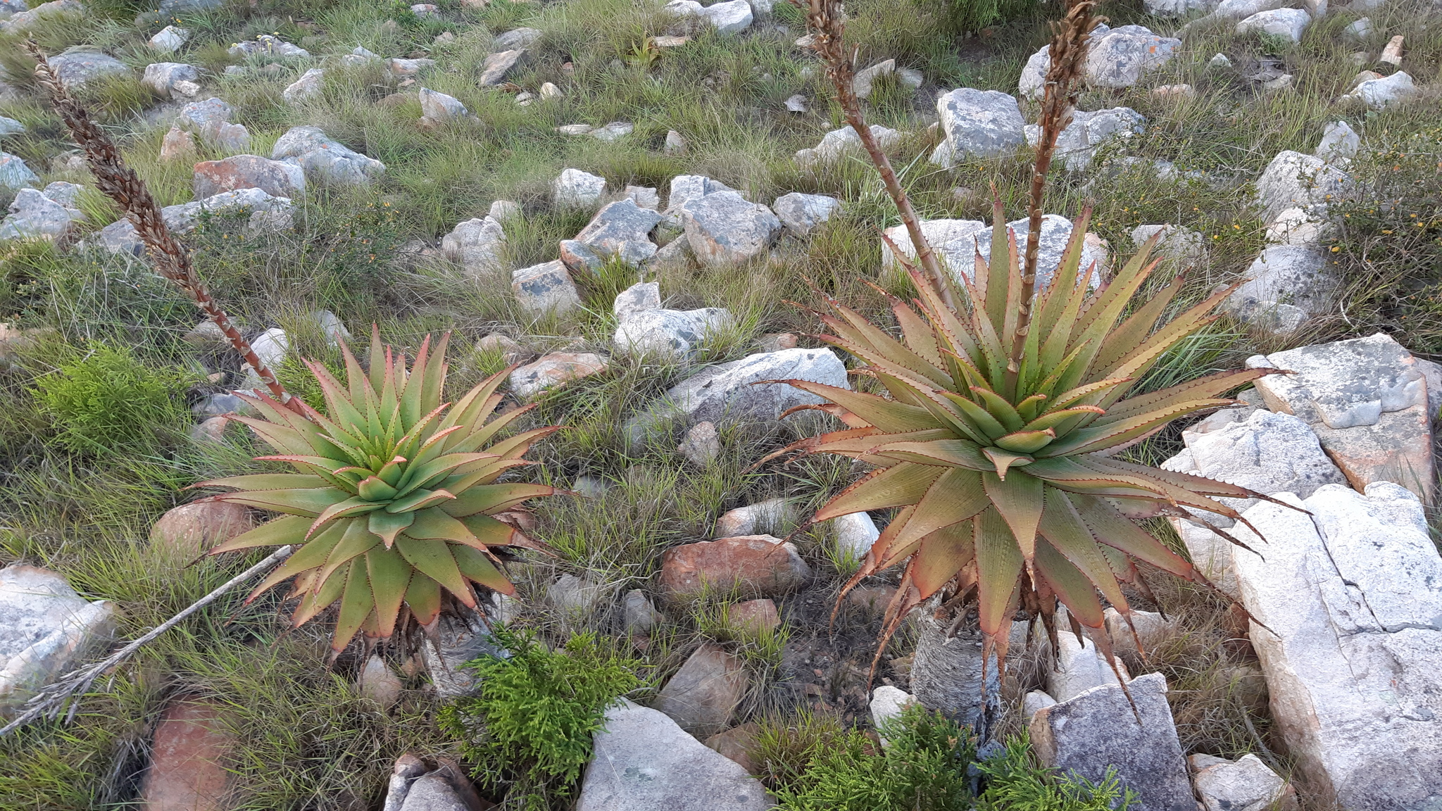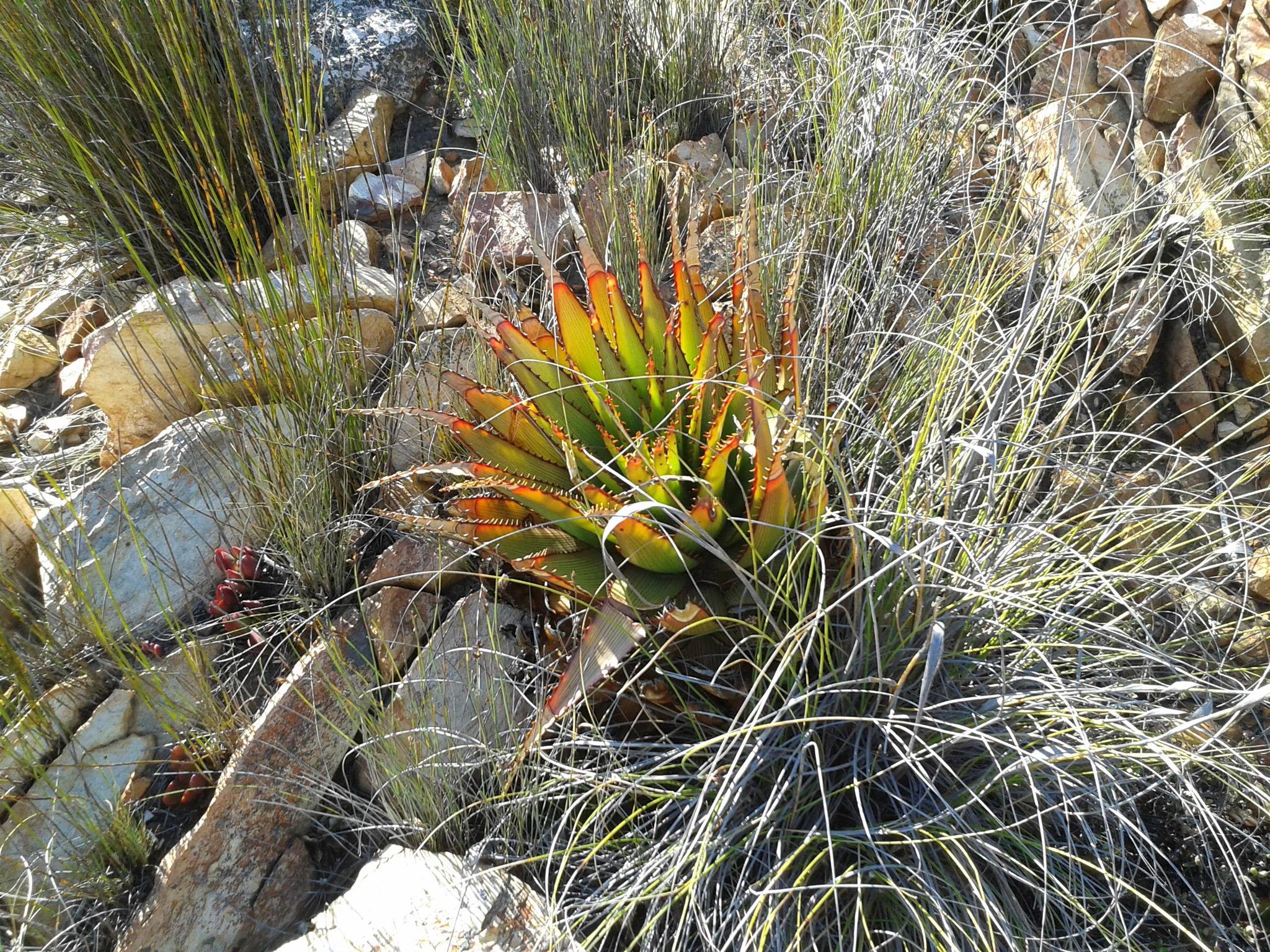 Aloe lineata主要分布在南非西开普省的冬季雨区和小卡鲁,从Ladismith到George一带,海拔约200-800米。该种生长在岩石山坡、石质土壤或碎石区,阳光充足、排水良好,年降雨量约200-500毫米,主要集中在冬季,夏季干旱高温。植株常出现在开阔岩石露头或浅洼地,与其他卡鲁多肉植物共生,形成局部生态系统。分布范围碎片化,但局部健康。