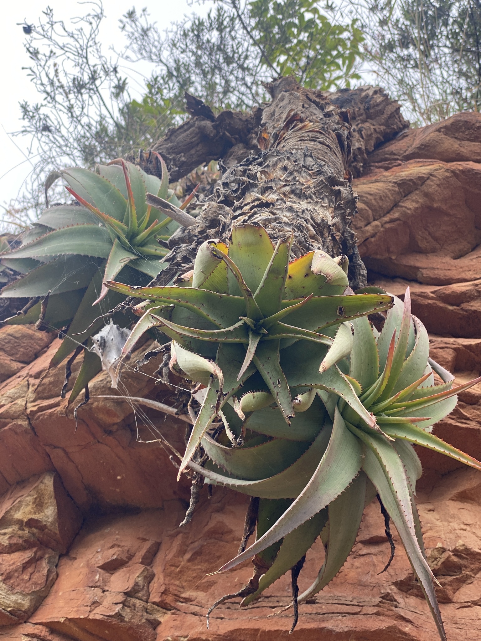 | var. muirii | 叶片黄色绿色至深绿色,具非常明显的红线,纹理较硬、刚性,牙齿较大(2-4 mm),叶片较宽(宽10-15 cm),坚硬危险 | 花序多分枝,高60-100 cm,花期冬季(6-8月),花红色到红粉色 | 植株高度可达2 m,有干叶覆盖茎,生长较慢但更茂密;分布于小卡鲁内陆区,岩石露头 |