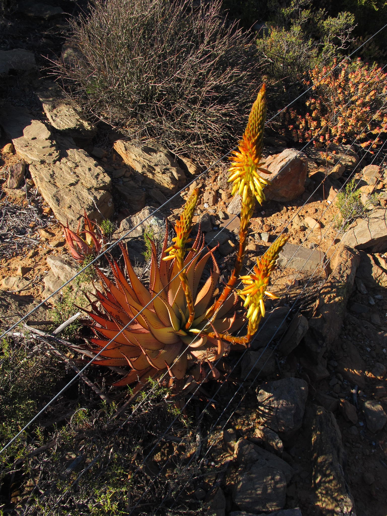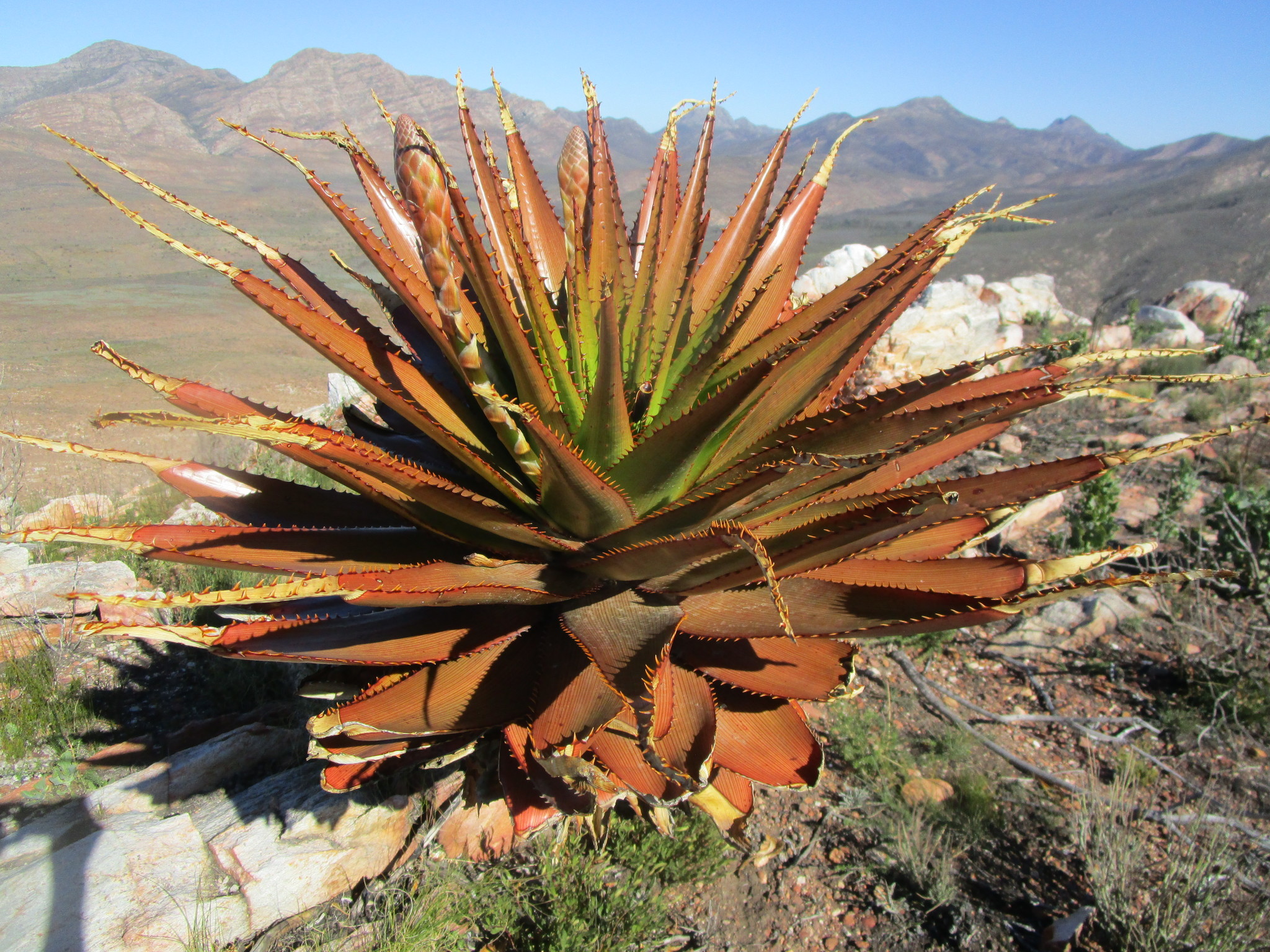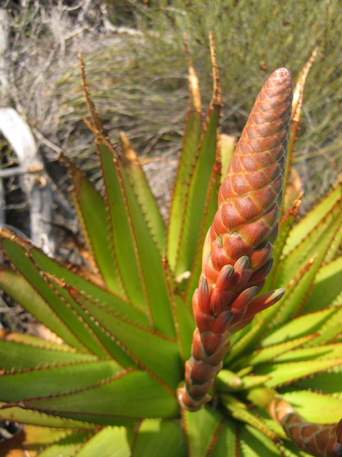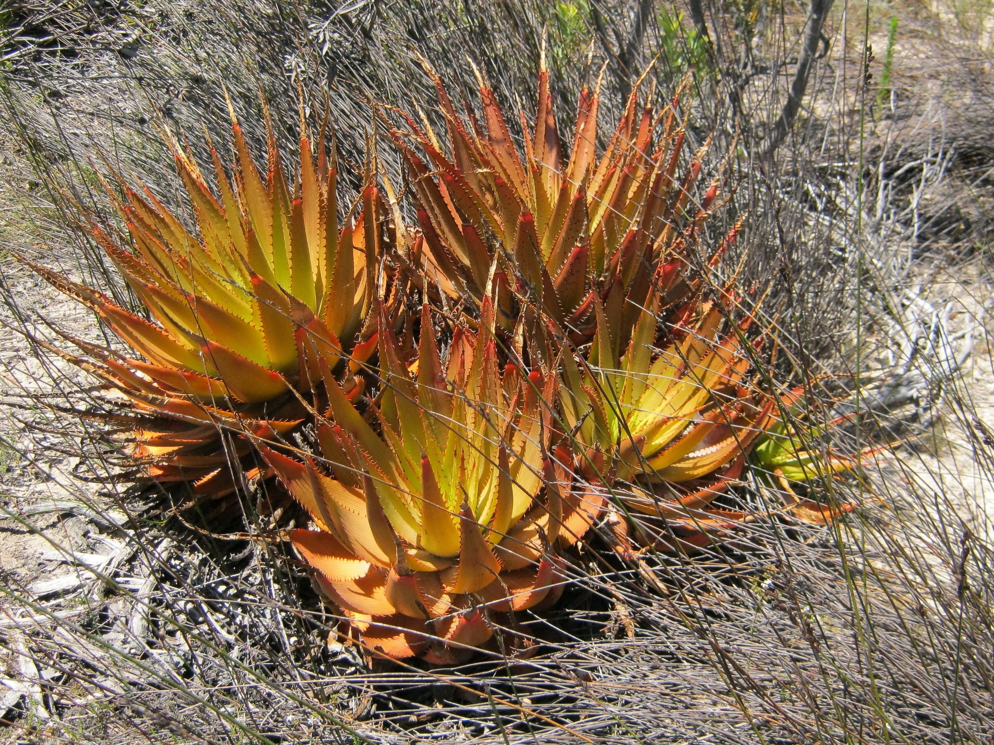 var. muirii 叶片黄色绿色至深绿色,具非常明显的红线,纹理较硬、刚性,牙齿较大(2-4 mm),叶片较宽(宽10-15 cm),坚硬危险 花序多分枝,高60-100 cm,花期冬季(6-8月),花红色到红粉色 植株高度可达2 m,有干叶覆盖茎,生长较慢但更茂密;分布于小卡鲁内陆区,岩石露头
