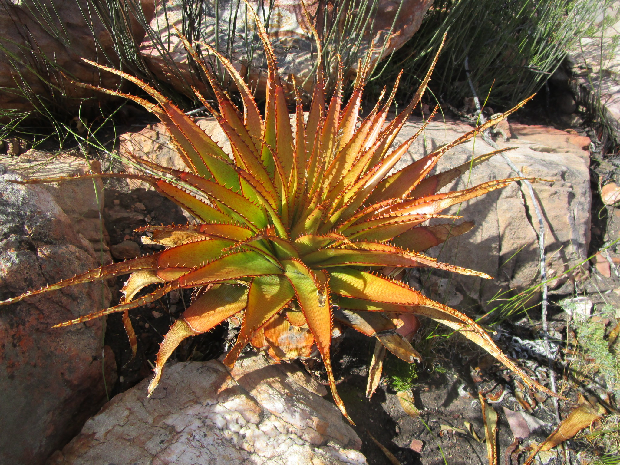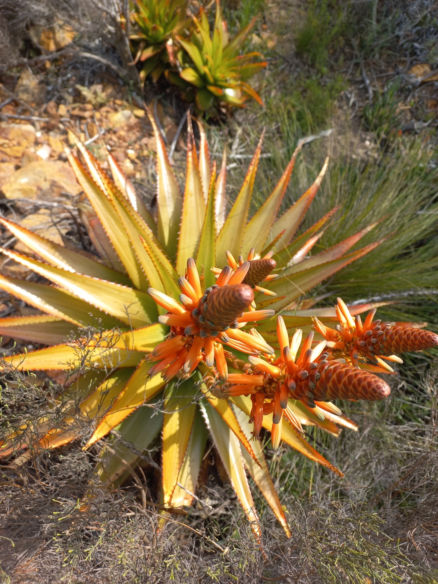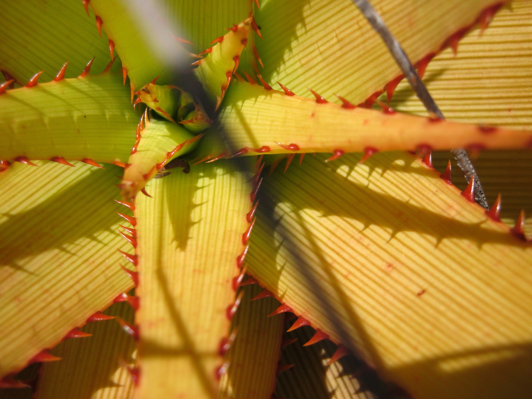 var. muirii 叶片黄色绿色至深绿色,具非常明显的红线,纹理较硬、刚性,牙齿较大(2-4 mm),叶片较宽(宽10-15 cm),坚硬危险 花序多分枝,高60-100 cm,花期冬季(6-8月),花红色到红粉色 植株高度可达2 m,有干叶覆盖茎,生长较慢但更茂密;分布于小卡鲁内陆区,岩石露头