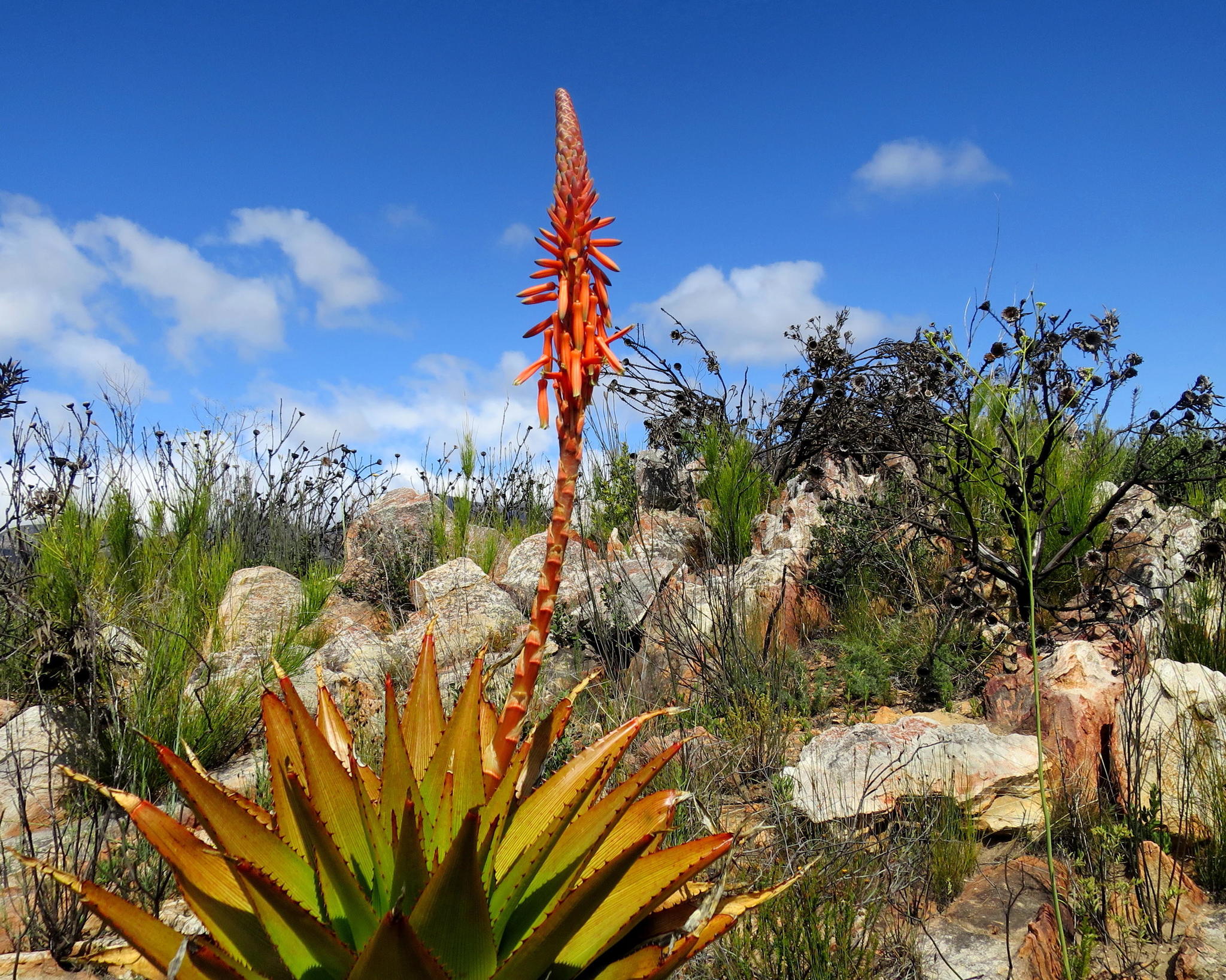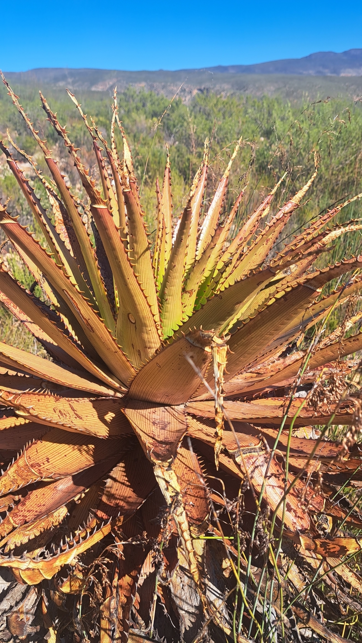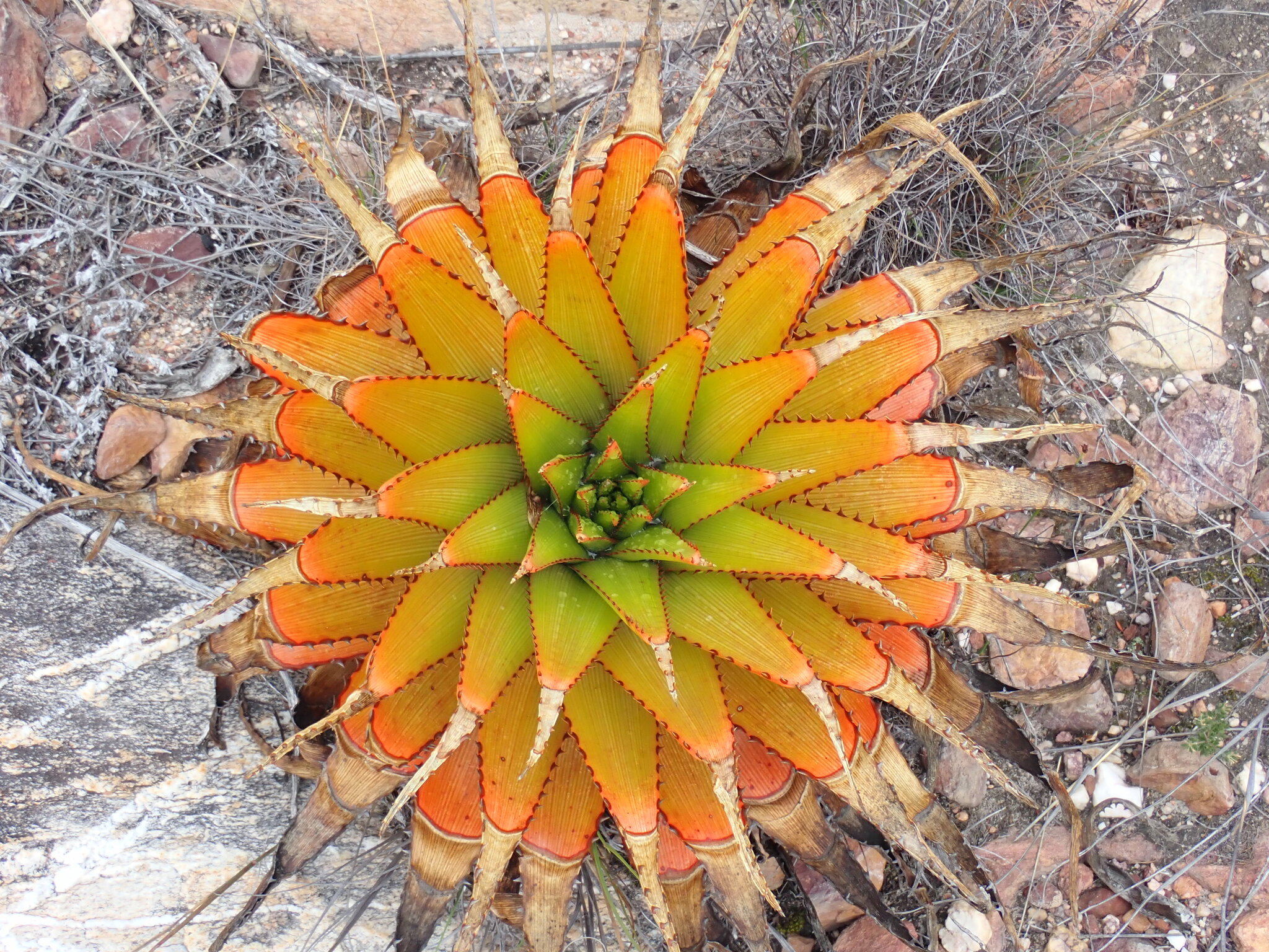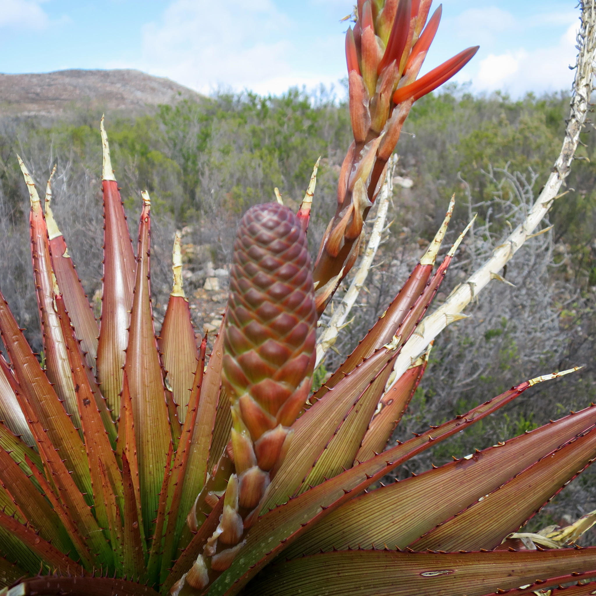 var. muirii 叶片黄色绿色至深绿色,具非常明显的红线,纹理较硬、刚性,牙齿较大(2-4 mm),叶片较宽(宽10-15 cm),坚硬危险 花序多分枝,高60-100 cm,花期冬季(6-8月),花红色到红粉色 植株高度可达2 m,有干叶覆盖茎,生长较慢但更茂密;分布于小卡鲁内陆区,岩石露头