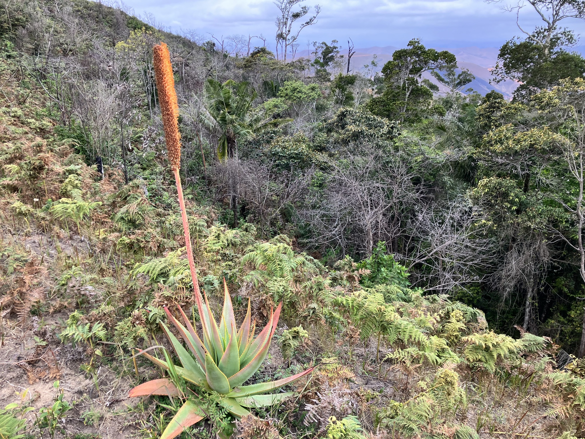 Aloe macroclada主要分布在马达加斯加中南部和南部的干燥草原、岩石露头或岩石面上,海拔500-1500米。该种生长在季节性干燥的热带生物群落中,常出现在岩石坡地或裂缝上,土壤贫瘠排水良好,受季风影响,雨季短暂而旱季漫长,温度高,常在20-35°C之间。植株对排水要求极高,避免积水;它常与马达加斯加其他多肉植物共生,形成局部微生态系统。分布范围狭窄,总面积估计不到500平方公里,导致其对栖息地干扰敏感。
