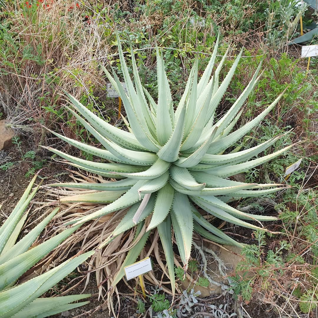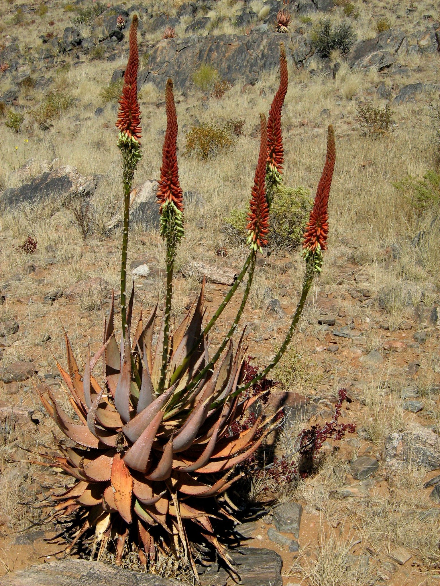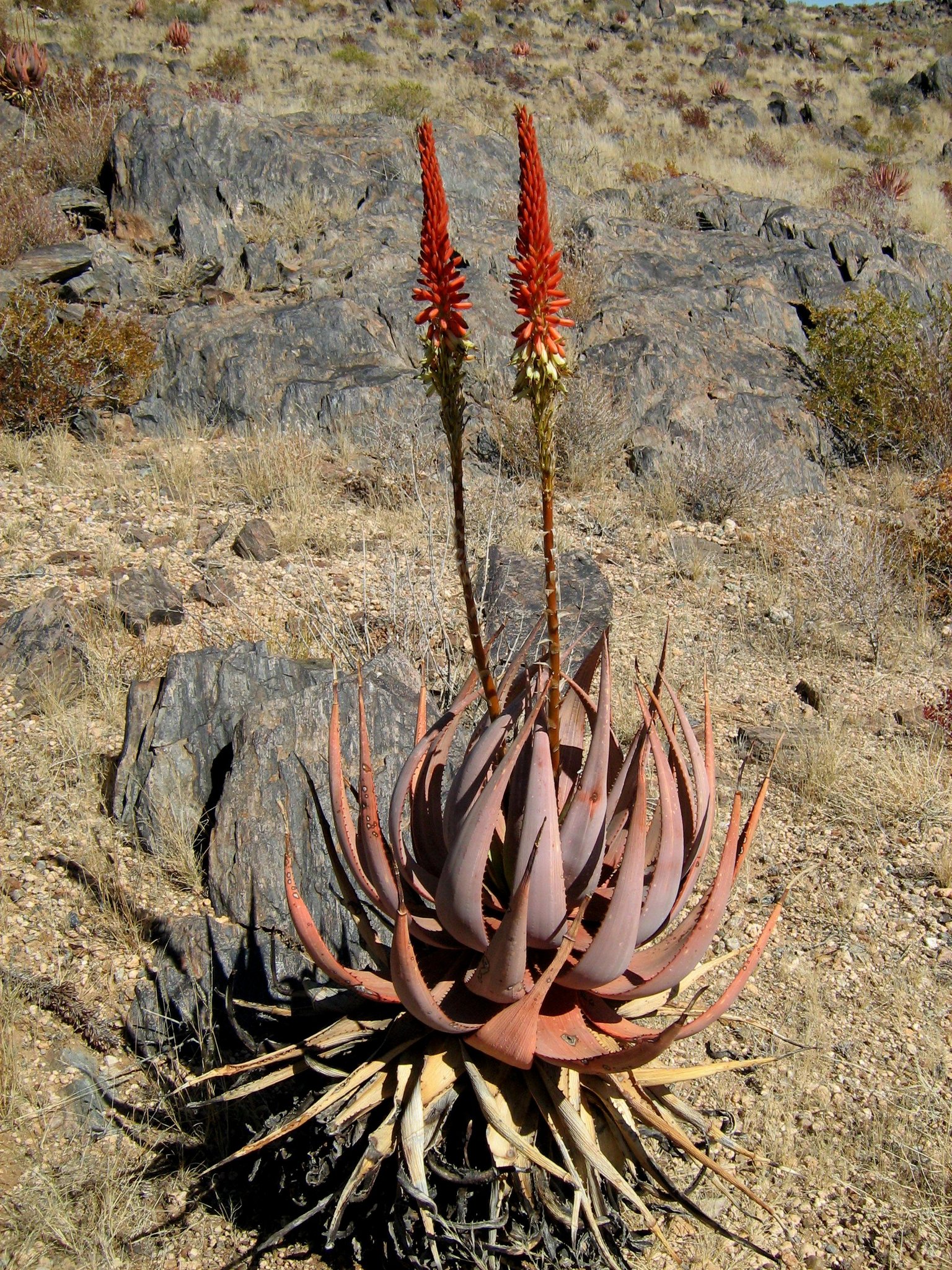 是一种南非和纳米比亚特有芦荟属植物,原产于干燥的热带和亚热带地区。它是一种中型、茎less或短茎的单生莲座状多肉植物,以其狭窄上弯的叶片和红色边缘牙齿而闻名。该物种于1915年由Neville Stuart Pillans首次描述,种名“gariepensis”源自Gariep River(Orange River的旧称),描述了其主要栖息地。作为一种岩生适应植物,它生长在干燥的岩石坡地和河谷中,常出现在岩石裂缝或灌木保护下,适合作为观赏芦荟栽培,尤其在旱景花园或容器中,但野生种群易受栖息地破坏影响,已被评估为无危。