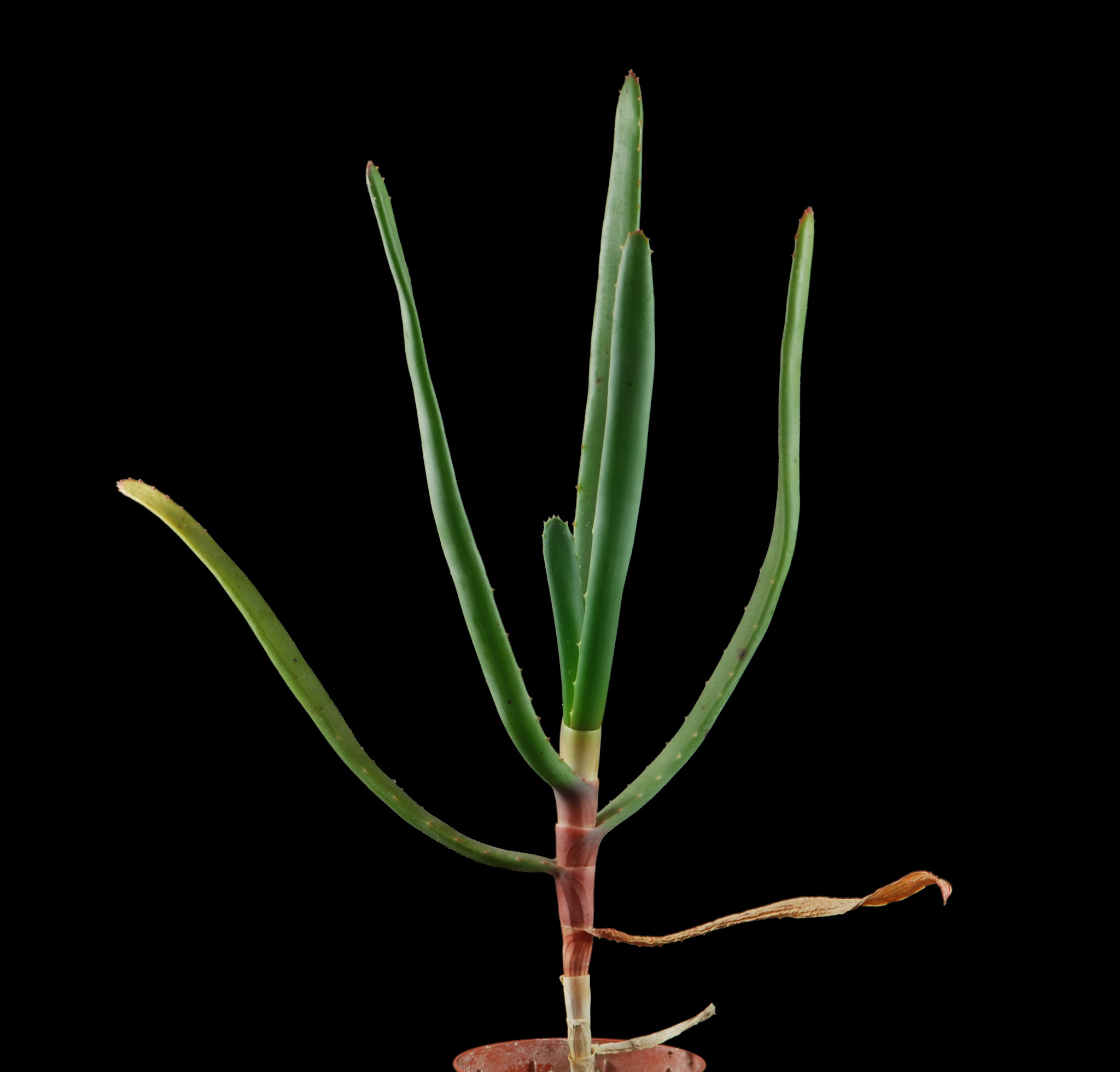 是一种稀有的马达加斯加特有芦荟属植物,原产于该岛中部高原地区。它是一种小型、无茎或短茎的莲座状多肉植物,以其橡胶质、几乎管状的深绿色叶片和微小到无的浅黄色齿而闻名。该物种于1931年由Henri Perrier在Revue de Botanique Appliquée et d’Agriculture Tropicale中首次描述,种名“parallelifolia”源自拉丁语,意为“平行叶”,描述了其叶片平行排列的特征。作为一种岩生适应植物,它生长在季节性干燥的热带生物群落中,常出现在岩石坡面或裂缝上,适合作为观赏多肉植物栽培,但野生种群稀少,需注意保护。