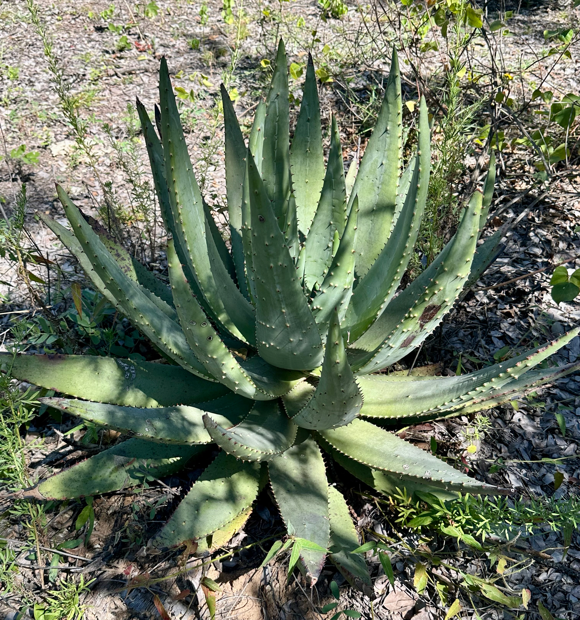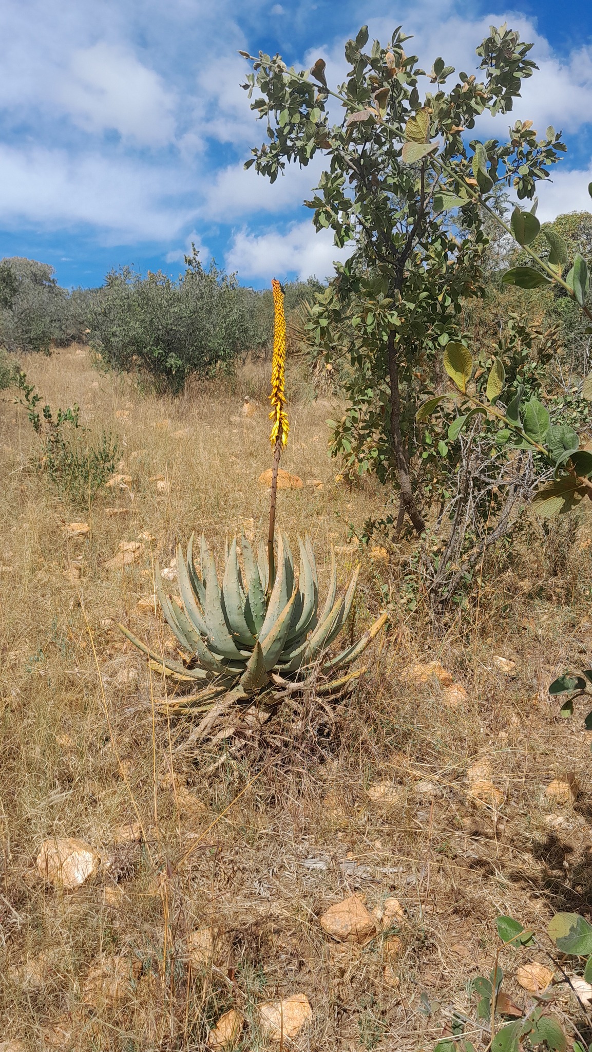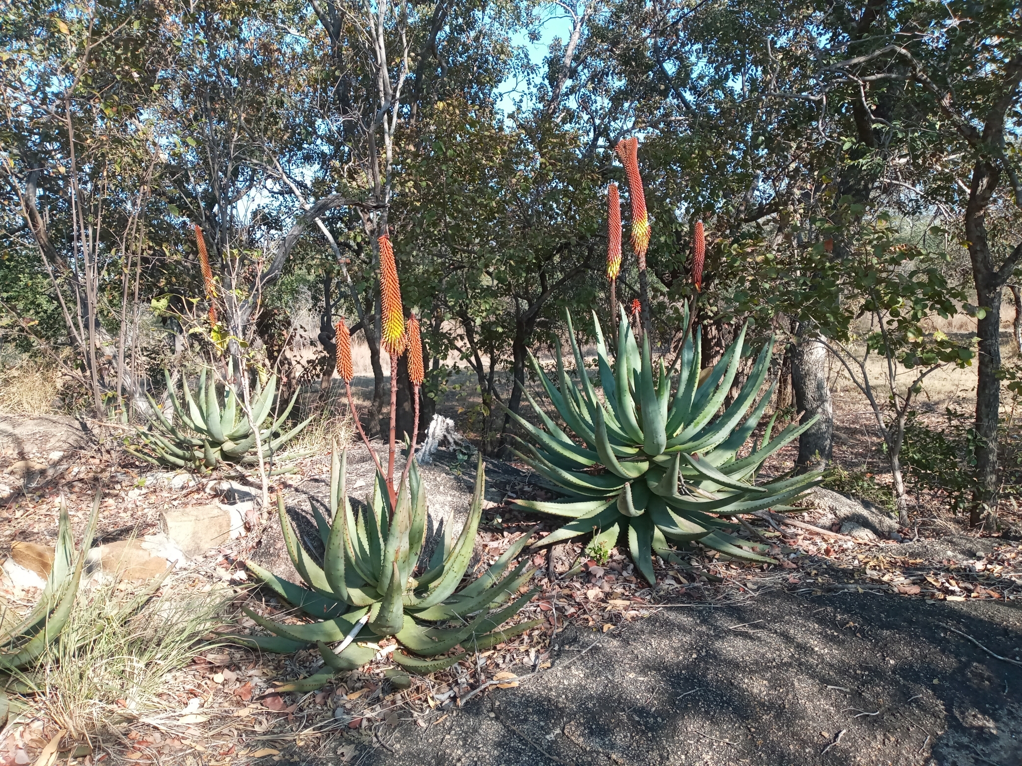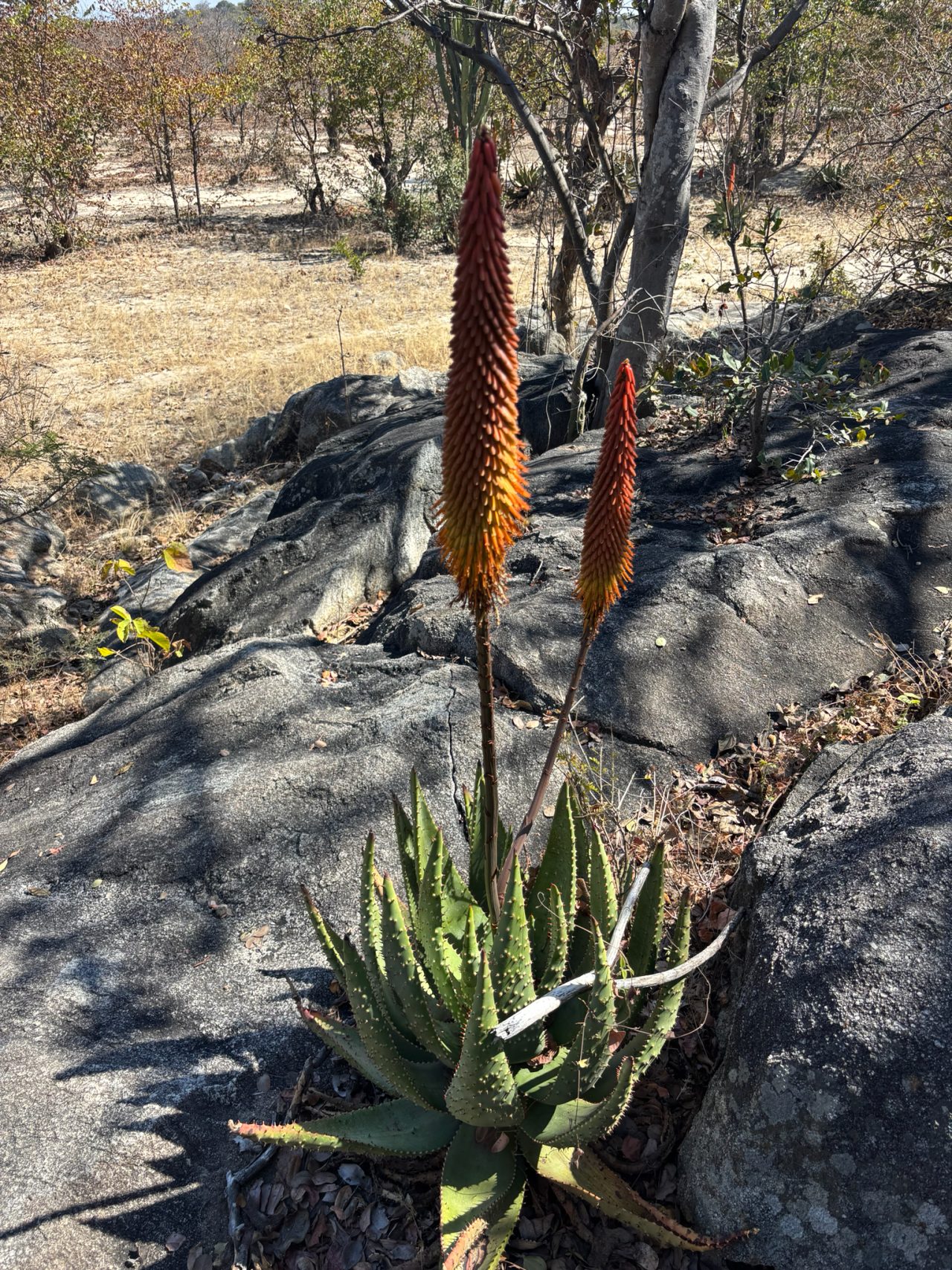 Aloe aculeata主要分布在南非Limpopo省和Mpumalanga省北部、津巴布韦南部和中部以及莫桑比克的部分地区,海拔500-1700米。该种生长在岩石区域、开阔bushveld或草原中,阳光充足、排水良好,年降雨量约500-800毫米,主要集中在夏季,旱季漫长高温。土壤为石质或砂质,常与灌木丛伴生,形成局部生态系统。分布范围碎片化,但局部丰度高,导致其对干扰敏感。