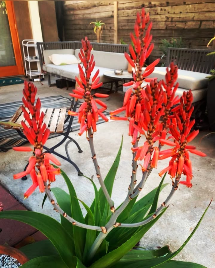Aloe steudneri生长缓慢,形成大型莲座状叶丛,直径可达60厘米(2英尺)。叶片约15-25片,肉质披针形,长约30-50厘米(12-20英寸),宽5-8厘米(2-3英寸),表面光滑蜡质,蓝绿色,常在强光下呈红色调,偶有白色斑点;边缘有尖锐的红色棕色牙齿,长约2-4毫米,间隔10-20毫米。叶片排列成莲座状,在干旱或强光下可能卷曲或呈红色调。叶汁干燥呈黄色。花序从叶丛中心伸出,高约1-1.5米,多分枝(可达5-10枝);总状花序圆柱形,长约20-30厘米(8-12英寸);花朵橙红色,长约3-4厘米(1.2-1.6英寸),管状,密集排列成锥形。花期主要在南半球晚春至早夏(约5-7月)。果实为蒴果,长圆形,长约2厘米,直径1厘米;种子有翅。植株整体生长缓慢,长寿,变异性主要在叶色从蓝绿到红调,取决于光照和水分。