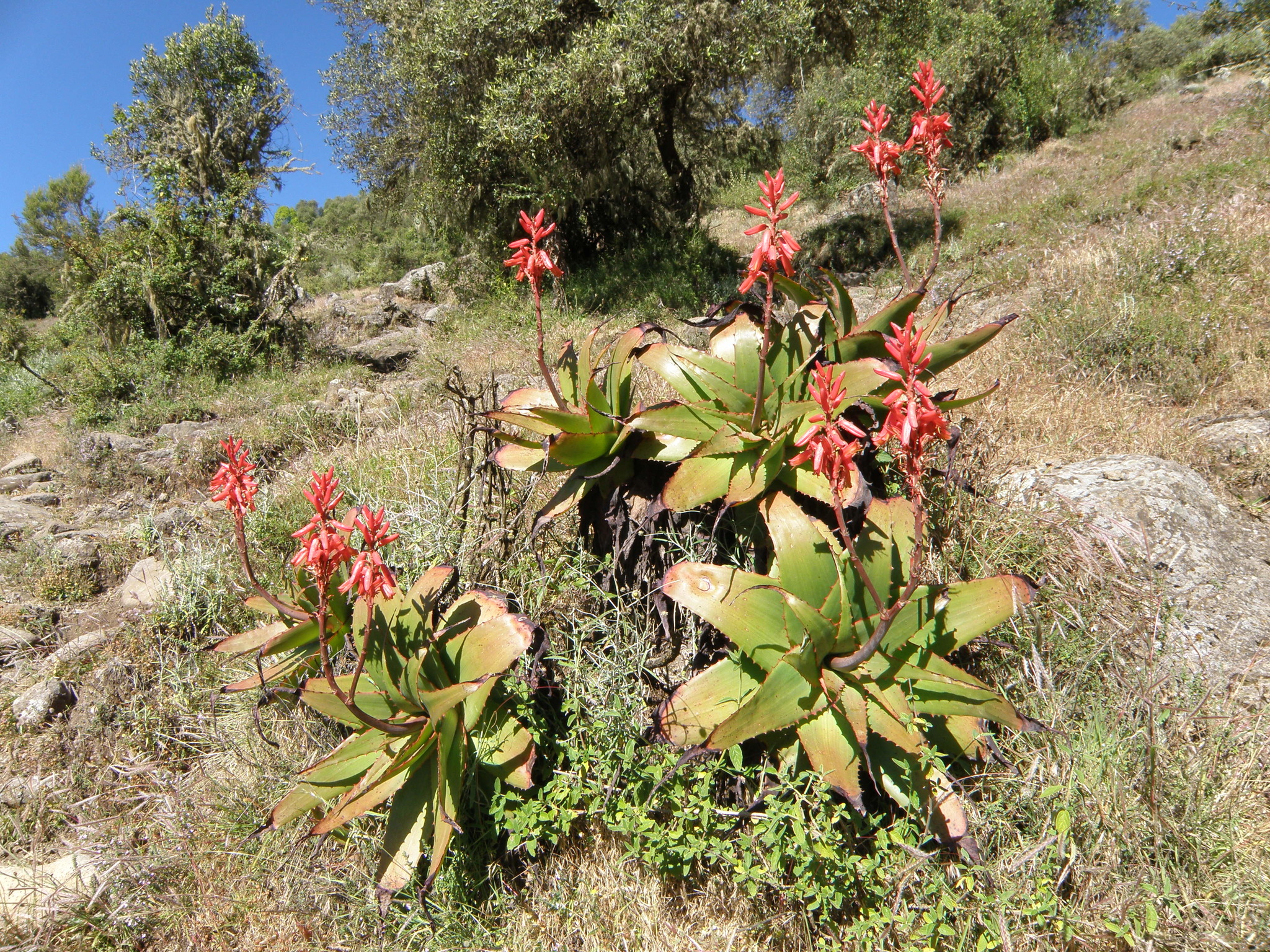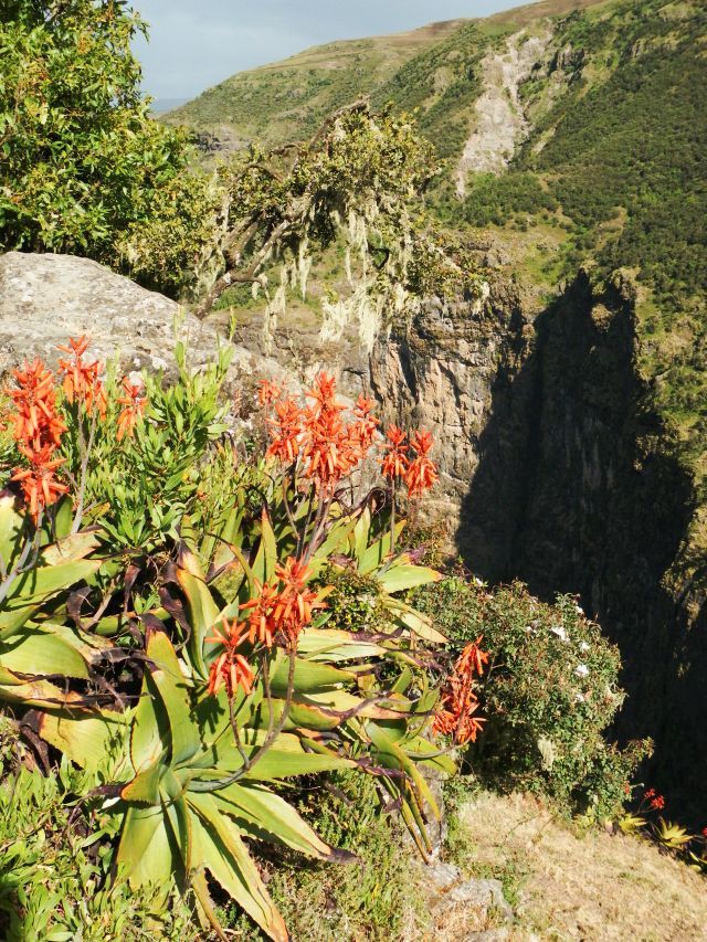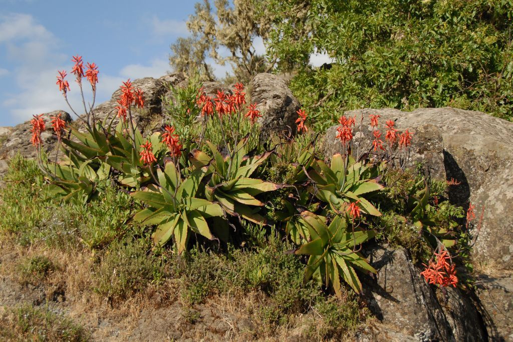 Aloe steudneri是埃塞俄比亚的特有种,主要分布在中部和北部的高原地区,海拔约1500-2400米(5000-8000英尺)。该种生长在干燥的热带生物群落中,常出现在岩石草原、陡坡和崖壁上,土壤贫瘠排水良好,年降雨量中等,受季风影响,雨季丰沛而旱季干旱,温度凉爽,常在10-25°C之间。植株对排水要求极高,避免积水;它常与埃塞俄比亚其他耐旱植物共生,形成小群落。分布范围狭窄,总面积估计不到500平方公里,导致其对栖息地干扰敏感。