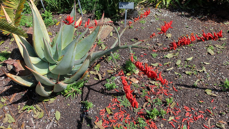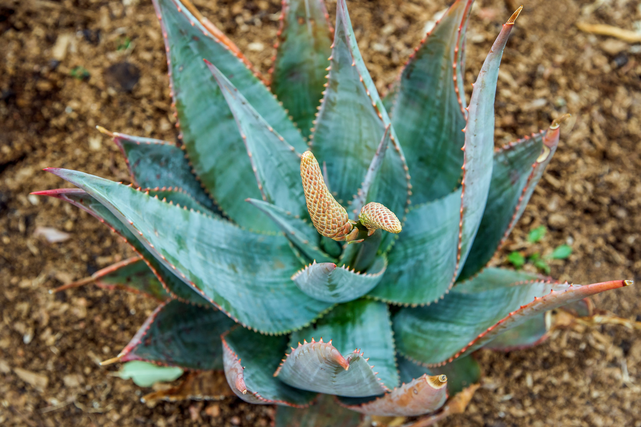 Aloe ortholopha通常为无茎、单生的莲座状植物,成年植株高度约30-40厘米,直径约40-50厘米(16-20英寸)。叶片约15-25片,宽阔平展、肉质厚实,长20-30厘米(8-12英寸),宽8-10厘米(3-4英寸),表面光滑蜡质,蓝绿色至灰绿色,具明显的纵向纹理;在强光或干旱下呈红色调;边缘有薄薄的粉橙色软骨质边,有小而尖锐的红色齿刺,长约1-2毫米,间隔5-10毫米。叶片排列成开放的莲座状。花序从叶丛中心伸出,高约60-100厘米,多分枝(可达5-10枝);总状花序圆柱形,长约20-30厘米(8-12英寸);花朵红色到红粉色,长约3-4厘米(1.2-1.6英寸),管状,密集排列成几何状,如烟花。花期主要在南半球晚春至夏季(约4-6月)。果实为蒴果,长圆形,长约2厘米,直径1厘米;种子有翅。植株整体生长缓慢,长寿,变异性主要在叶色从蓝绿到红粉,取决于光照和温度。