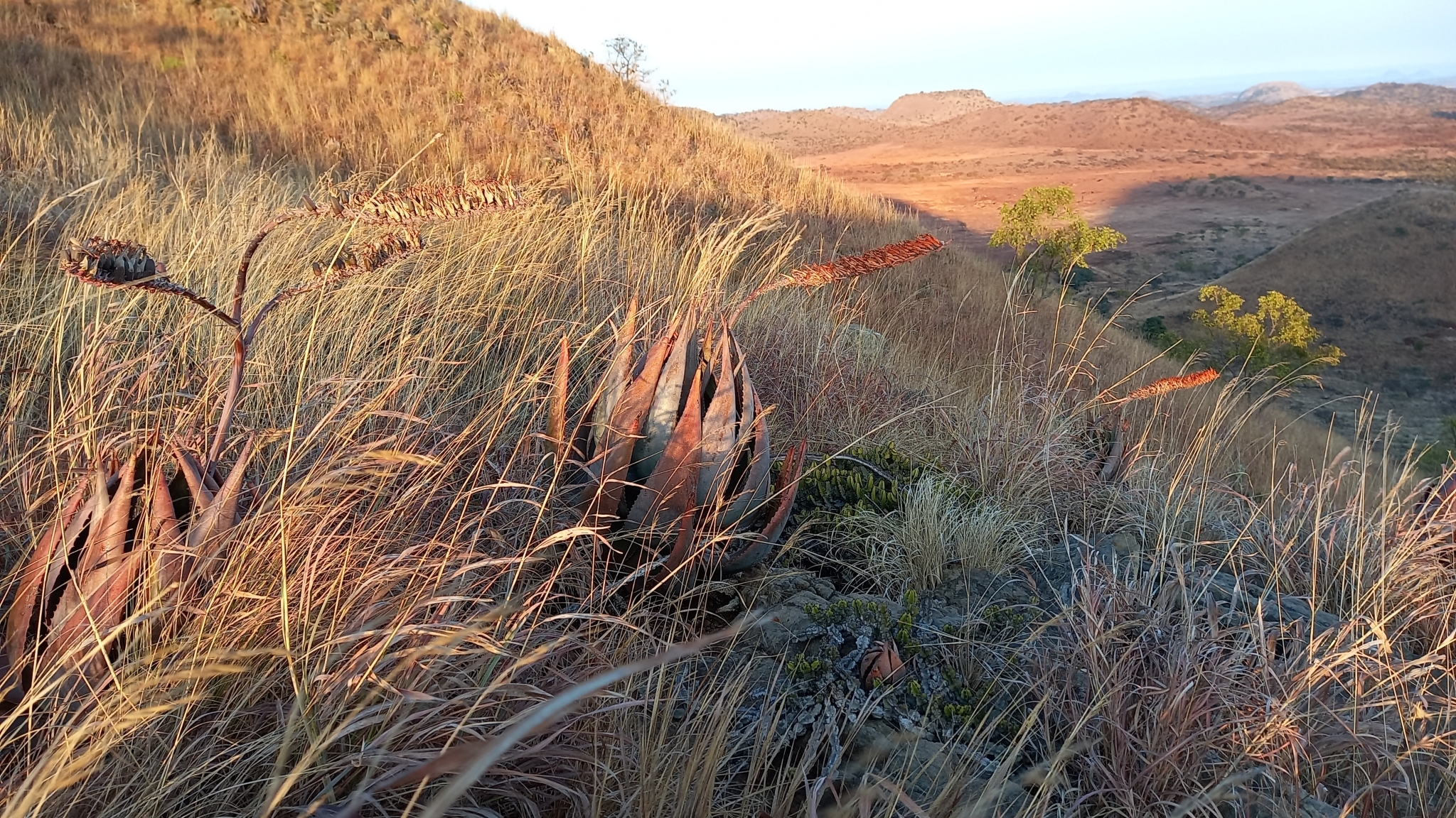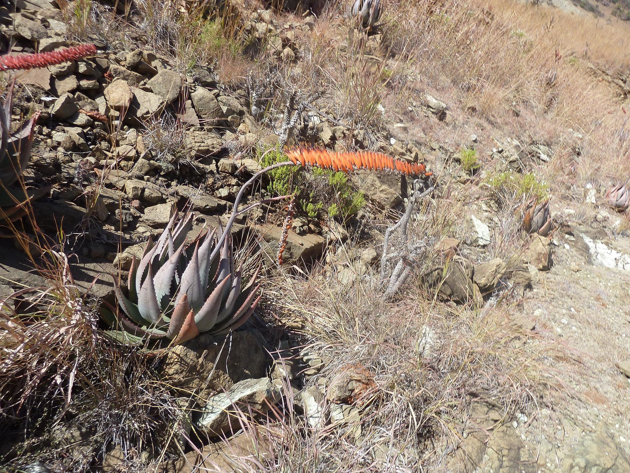 Aloe ortholopha主要分布在津巴布韦北部Great Dyke和Mvurwi Range的蛇纹岩草原中,海拔约1450-1525米。该种生长在干燥的热带生物群落中,常出现在坡地、岭脊和岩石露头上,土壤贫瘠排水良好,年降雨量中等,受季风影响,雨季短暂而旱季漫长,温度高,常在20-35°C之间。植株对排水要求极高,避免积水;它常与津巴布韦其他耐旱植物共生,形成小群落。分布范围狭窄,总面积估计不到500平方公里,导致其对栖息地干扰敏感。