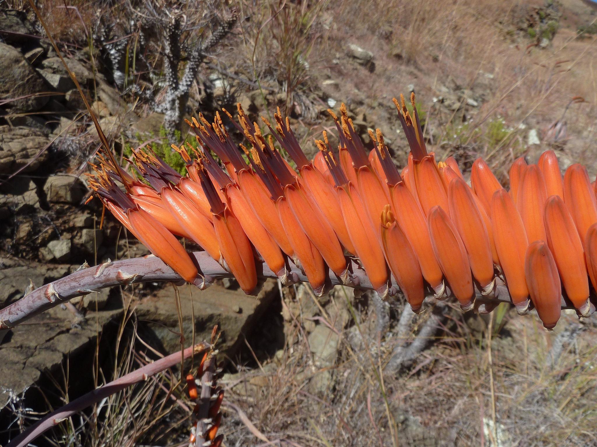 根据IUCN红色名录,Aloe ortholopha被列为“易危”(Vulnerable, VU)物种,主要威胁包括栖息地破坏(如农业扩张、采矿和森林砍伐)、非法采集(用于园艺贸易)和气候变化(如延长旱季导致的水资源短缺)。野生种群数量估计少于2500株,分布碎片化,受保护区覆盖有限。该种受CITES附录II管制,需要出口许可。保护措施包括原地保护(如建立微型保护区)、人工繁殖、种子库存储和监测。津巴布韦作为其原产地,实施本地法规,但执行挑战大。