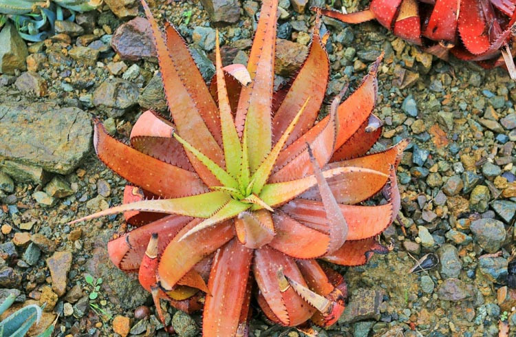 Aloe microstigma主要分布在南非西部和东部开普省的干燥热带地区,包括平坦开阔区、陡峭岩石坡地或灌木丛中,海拔约200-800米。该种生长在岩石山坡、石质土壤或碎石区,阳光充足、排水良好,年降雨量约200-500毫米,主要集中在冬季,夏季干旱高温。植株常出现在开阔岩石露头或浅洼地,与其他卡鲁多肉植物共生,形成局部生态系统。分布范围较广,但局部碎片化。
