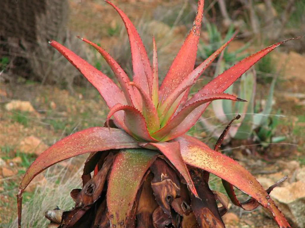 是一种南非特有芦荟属植物,原产于该国西部和东部开普省的干燥地区。它是一种中型、茎less或短茎的莲座状多肉植物,以其绿色叶片带红色调和不规则白色斑点而闻名。该物种于1830年由Rudolph Friedrich Hohenacker首次描述,种名“microstigma”源自希腊语,意为“小斑点”,描述了其叶片上的白色斑纹。作为一种岩生适应植物,它生长在平坦开阔区、陡峭岩石坡地或灌木丛中,适合作为观赏芦荟栽培,尤其在旱景花园中,但野生种群易受栖息地破坏影响,已被评估为无危。