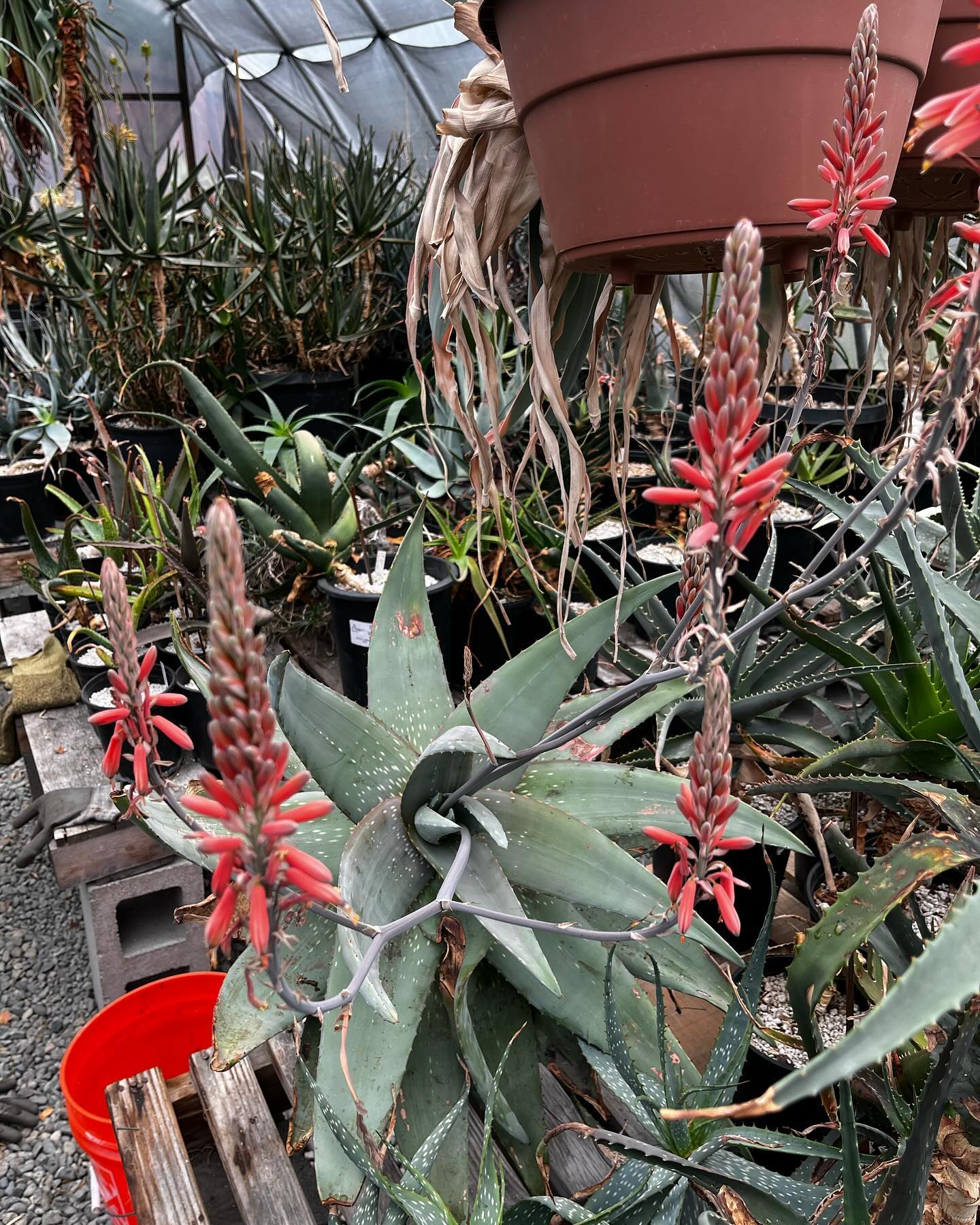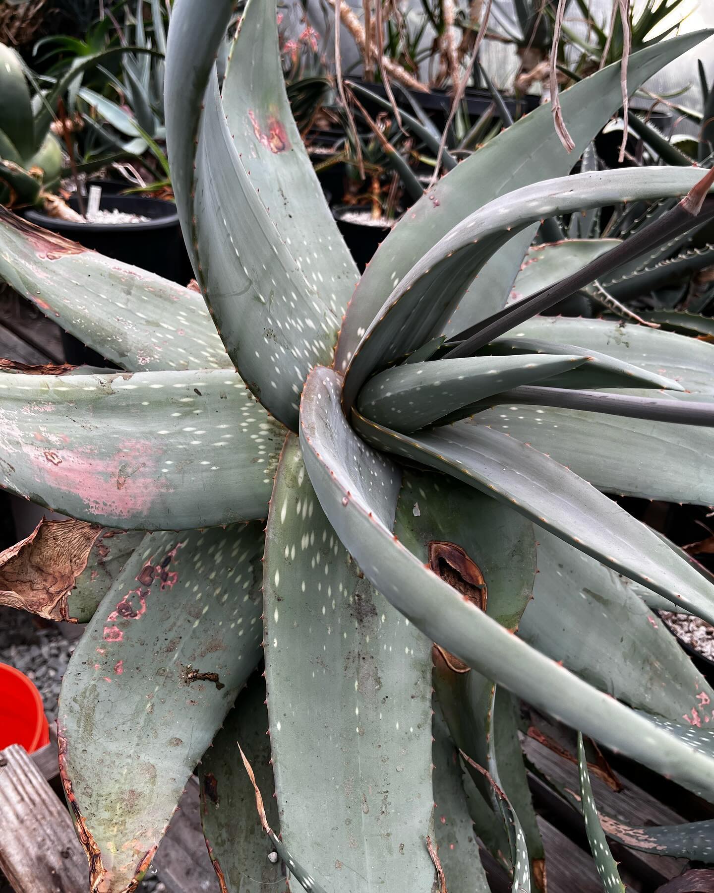 是一种纳米比亚特有芦荟属植物,原产于该国西北部的Kaokoveld地区,特别是Baynes Mountains。它是一种稀有、中等大小的悬崖栖息芦荟,以其下垂的灰绿色叶丛和暗红色花序而闻名。该物种于2005年由Ernst van Jaarsveld在Bradleya期刊中首次描述,种名“omavandae”源自当地Herero语中的“omavanda”,意为“悬崖植物”,反映其生长习性。该植物生长在季节性干燥的热带生物群落中,常出现在陡峭岩壁上,适合作为观赏芦荟栽培,尤其在悬挂容器或岩石花园中,但野生种群稀少且生长在难以接近的地方,已被评估为易危,需要优先选择人工繁殖来源以支持保护。