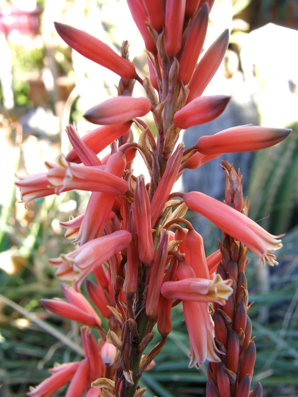 Aloe acutissima var. antanimorensis通常为矮小灌木,高约0.5-1米(1.6-3.3英尺),茎短而粗壮,直径约5-10厘米。叶片形成密集莲座丛,约15-25片,叶片狭窄披针形,长约15-20厘米(6-8英寸),宽2-4厘米(0.8-1.6英寸),表面光滑蜡质,浅绿色,在干旱或强光下转为红色或棕红色调;边缘有红色三角形齿,长约1-2毫米,间隔5-10毫米。叶片排列成开放莲座,常在坡面下垂。花序从叶丛中心伸出,高约30-50厘米,分支少;总状花序圆柱形,长约15-25厘米(6-10英寸);花朵红色,长约2-3厘米(0.8-1.2英寸),管状密集排列。花期主要在南半球夏季(约12-2月)。果实为蒴果,长圆形,长约2厘米,直径1厘米;种子有翅。植株整体生长缓慢,长寿,变异性主要在叶色从浅绿到红调,取决于环境。