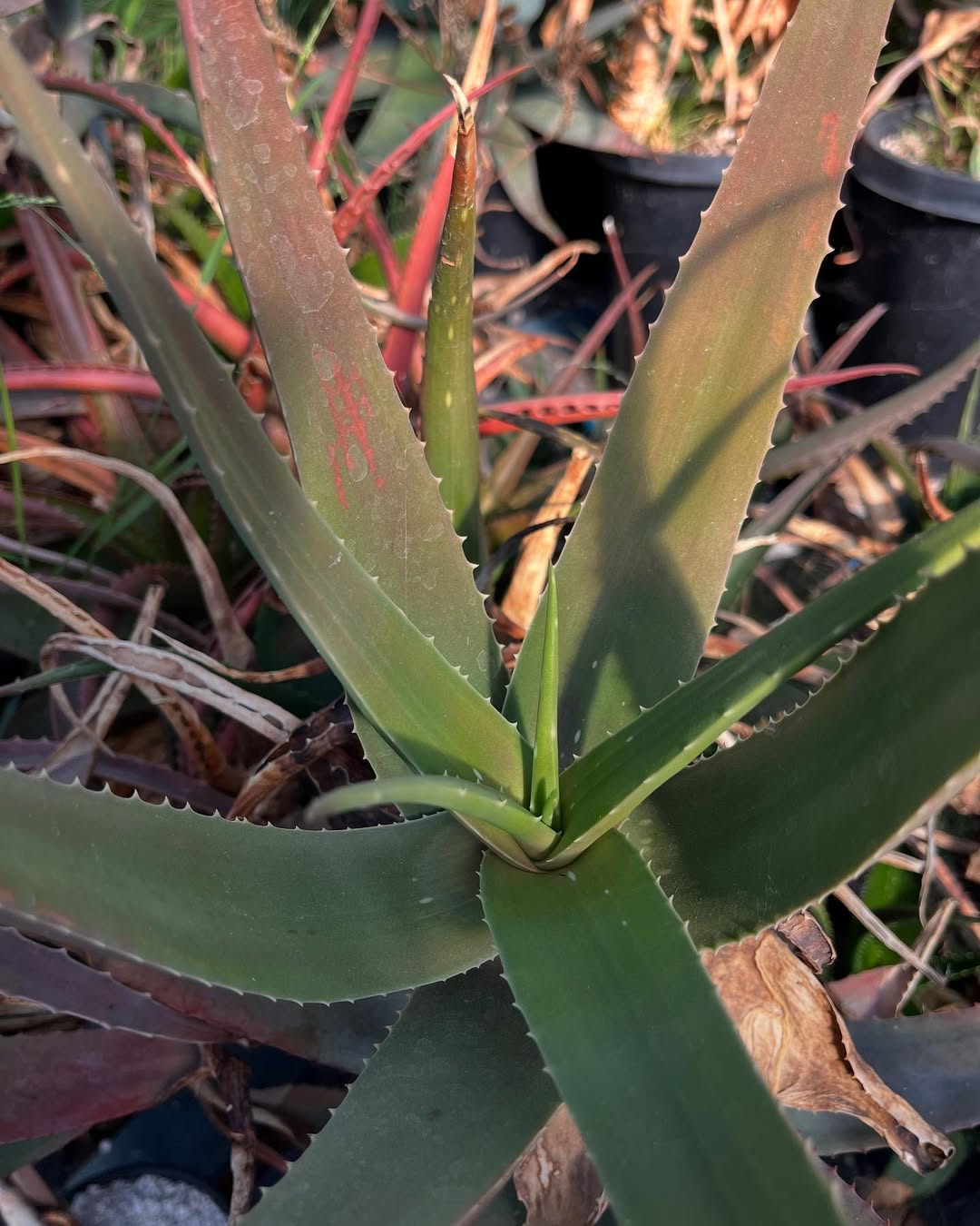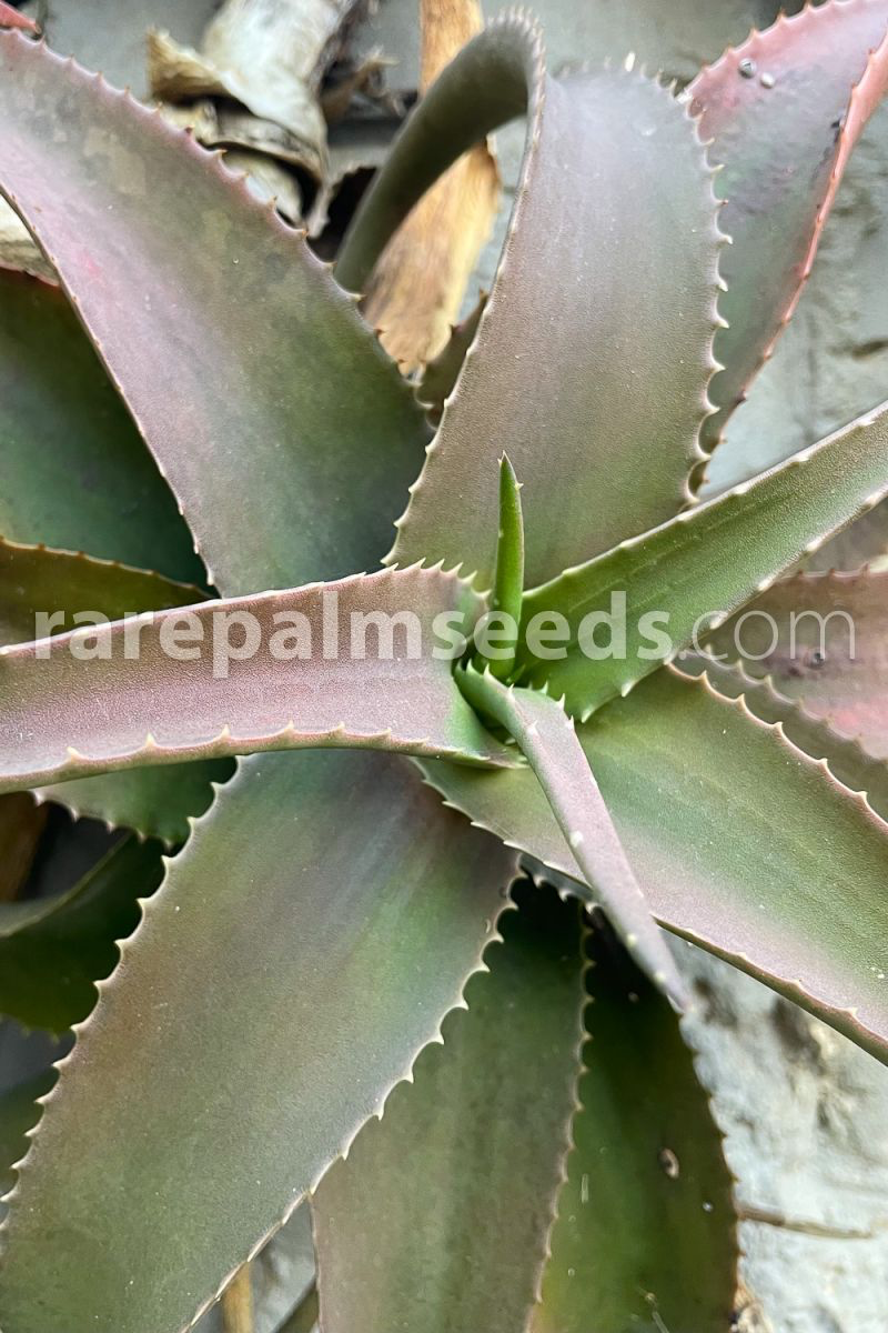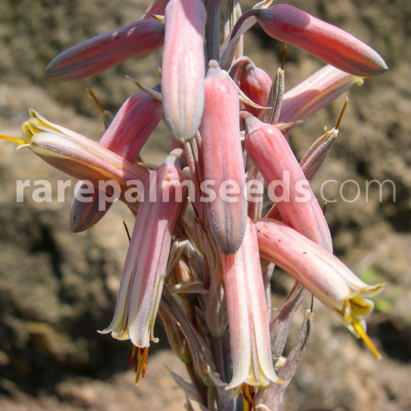 Aloe rendilliorum通常为无茎或极短茎的丛生植物,形成莲座状叶丛,直径约20-40厘米(8-16英寸)。叶片狭窄披针形,长约15-25厘米(6-10英寸),宽2-4厘米(0.8-1.6英寸),表面粗糙纹理,无斑点,灰绿色;在干旱或强光下可能卷曲或呈红色调;边缘有小而尖锐的白色或浅黄色牙齿,长约1-2毫米,间隔5-10毫米。叶片排列成开放的莲座状。花序从叶丛中心伸出,高约30-50厘米,稀疏分枝或不分枝;总状花序圆柱形,长约15-25厘米(6-10英寸);花朵粉红色,长约2-3厘米(0.8-1.2英寸),管状密集排列。花期主要在南半球夏季(约12-2月)。果实为蒴果,长圆形,长约2厘米,直径1厘米;种子有翅。植株整体生长缓慢,长寿,变异性主要在叶色从灰绿到红调,取决于环境。
