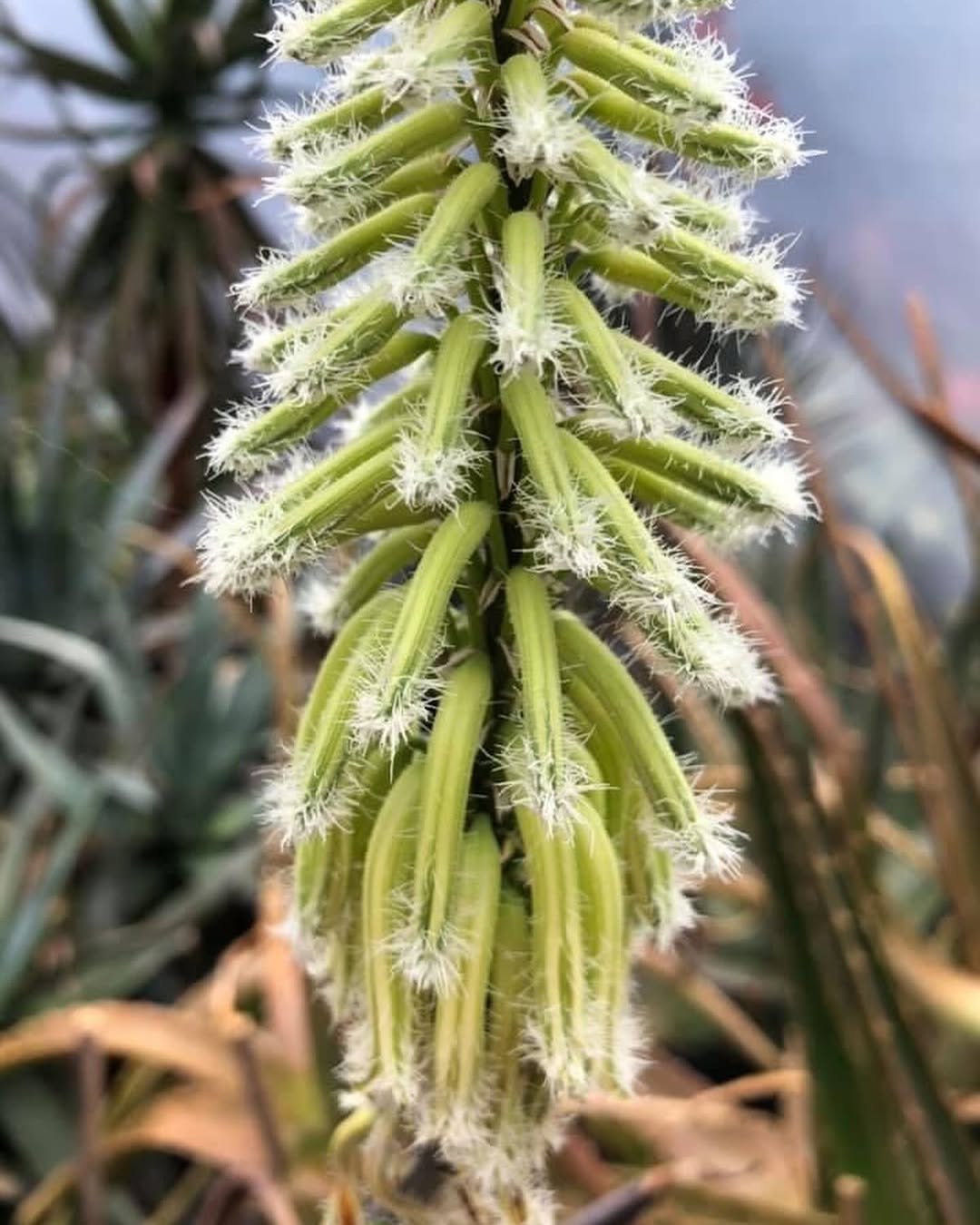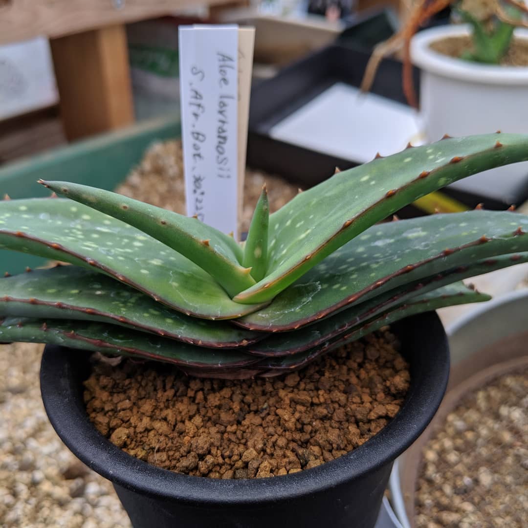 是一种阿拉伯半岛特有芦荟属植物,原产于也门南部干燥灌木丛和沙漠环境中。它是一种中型、丛生或单生的无茎多肉植物,以其宽阔的蓝紫色叶片和多变的毛状花序而闻名,花色红色或黄色。该物种于1957年由Gilbert Westacott Reynolds首次描述,种名“lavranosii”纪念植物学家John Lavranos。作为一种岩生适应植物,它生长在季节性干燥的热带生物群落中,适合作为观赏芦荟栽培,尤其在岩石花园或容器中,但野生种群易受栖息地破坏影响,已被评估为易危,需要优先选择人工繁殖来源以支持保护。