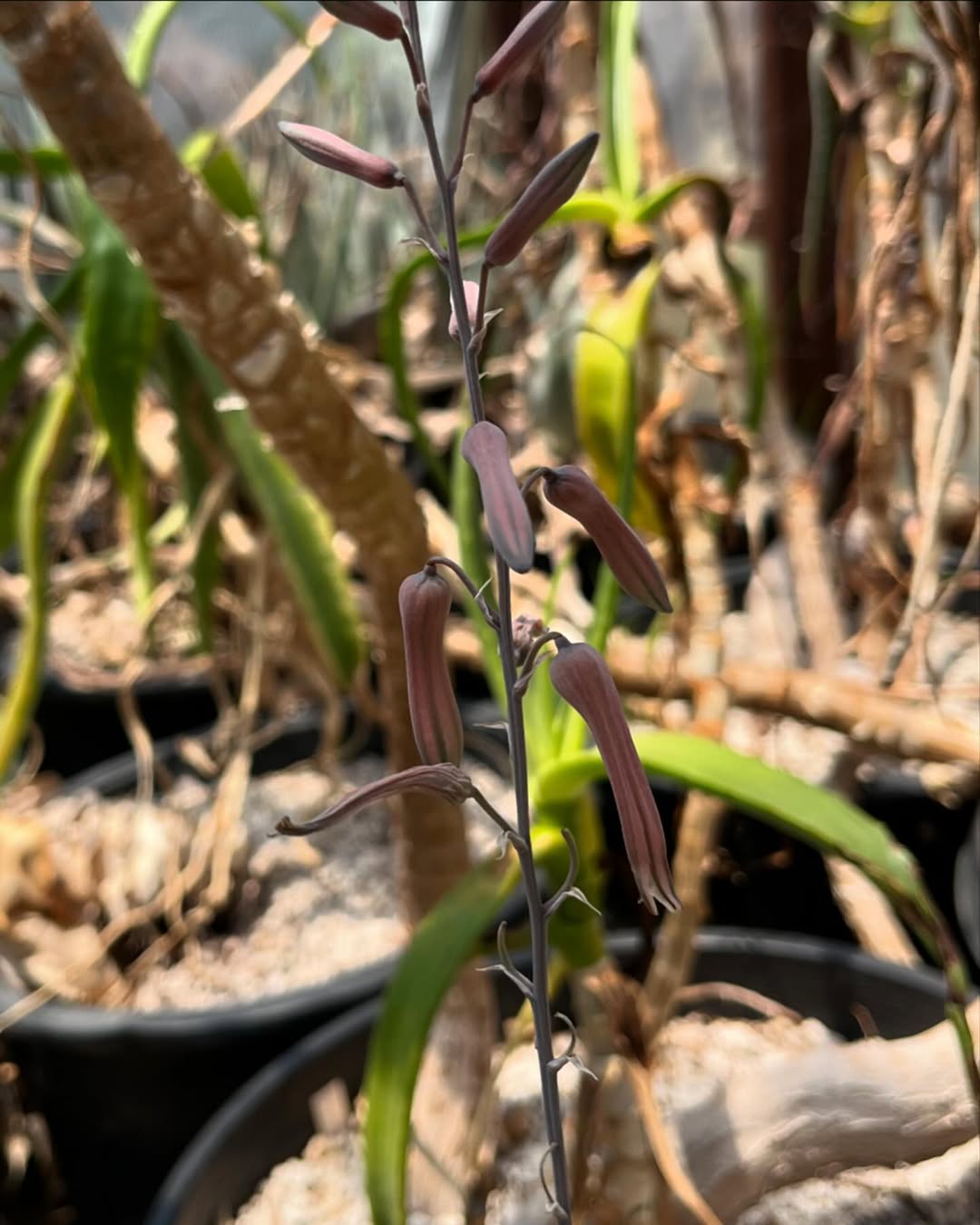 是一种也门南部特有芦荟属植物,原产于该国南部的干燥热带生物群落。它是一种小型、多肉植物,以其下垂生长习性和独特的倒挂崖壁形态而闻名。该物种于1997年由John J. Lavranos和Saleh Bilaidi首次描述。作为一种岩生适应植物,它生长在陡峭崖壁上,适合作为观赏芦荟栽培,尤其在岩石花园或容器中,但野生种群稀少且易受栖息地破坏影响,已被评估为易危,需要优先选择人工繁殖来源以支持保护。注意:叶汁可能有毒,摄入可导致腹泻或其他胃肠不适,避免儿童和宠物接触。