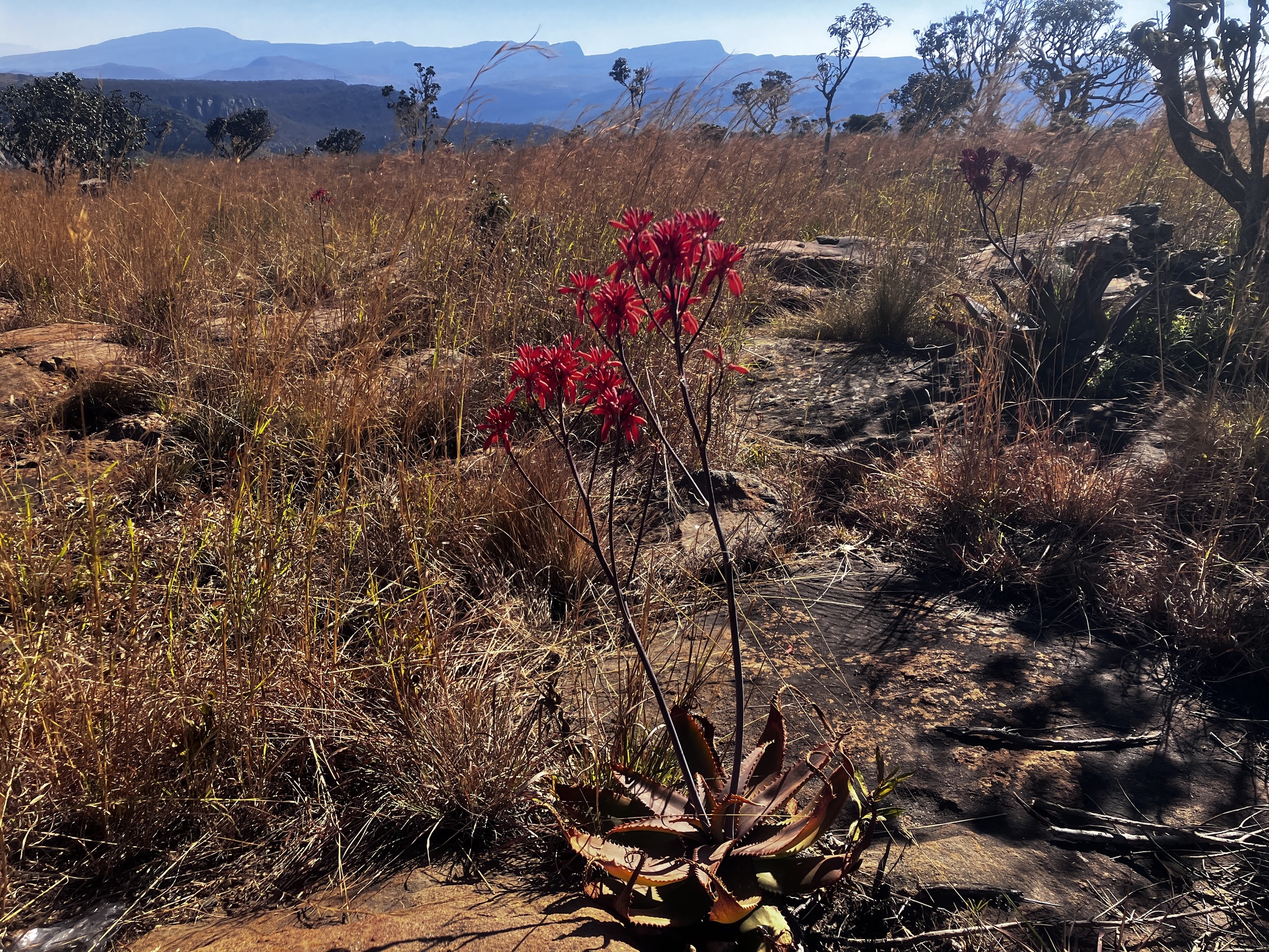 Aloe branddraaiensis主要分布在南非Mpumalanga省和Limpopo省的草地和灌木丛,海拔约500-1500米。该种生长在冬季雨区,阳光充足、排水良好,年降雨量约200-500毫米,主要集中在冬季,夏季干旱高温。植株常出现在开阔岩石露头或浅洼地,与其他南非耐旱植物共生,形成局部生态系统。分布范围狭窄,总面积有限,导致其对干扰敏感。