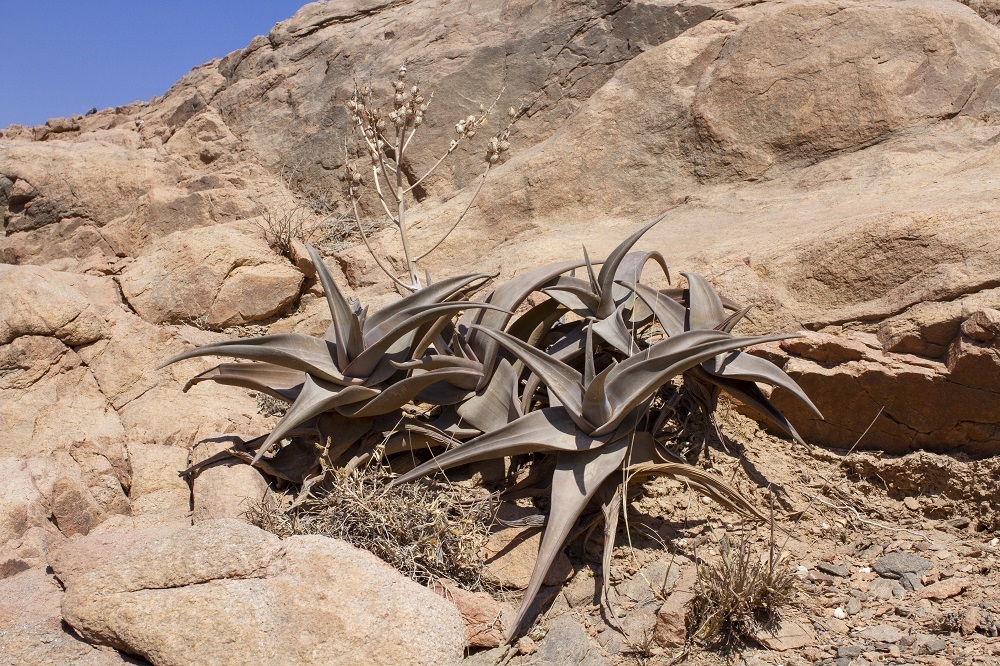 是一种阿拉伯半岛特有芦荟属植物,原产于阿曼西南部和也门东部的干燥热带生物群落。它是一种小型、无茎的莲座状多肉植物,以其光滑、无齿的灰绿色叶片和夏季橙黄色花序而闻名。该物种于2004年由Tom A. McCoy和John J. Lavranos首次描述,种名“praetermissa”源自拉丁语,意为“被忽略的”,反映其相对未知的状态。作为一种岩生适应植物,它生长在季节性干燥的热带生物群落中,常出现在岩石坡面或裂缝上,适合作为观赏芦荟栽培,尤其在岩石花园或容器中,但野生种群易受栖息地破坏影响,已被评估为易危,需要优先选择人工繁殖来源以支持保护。