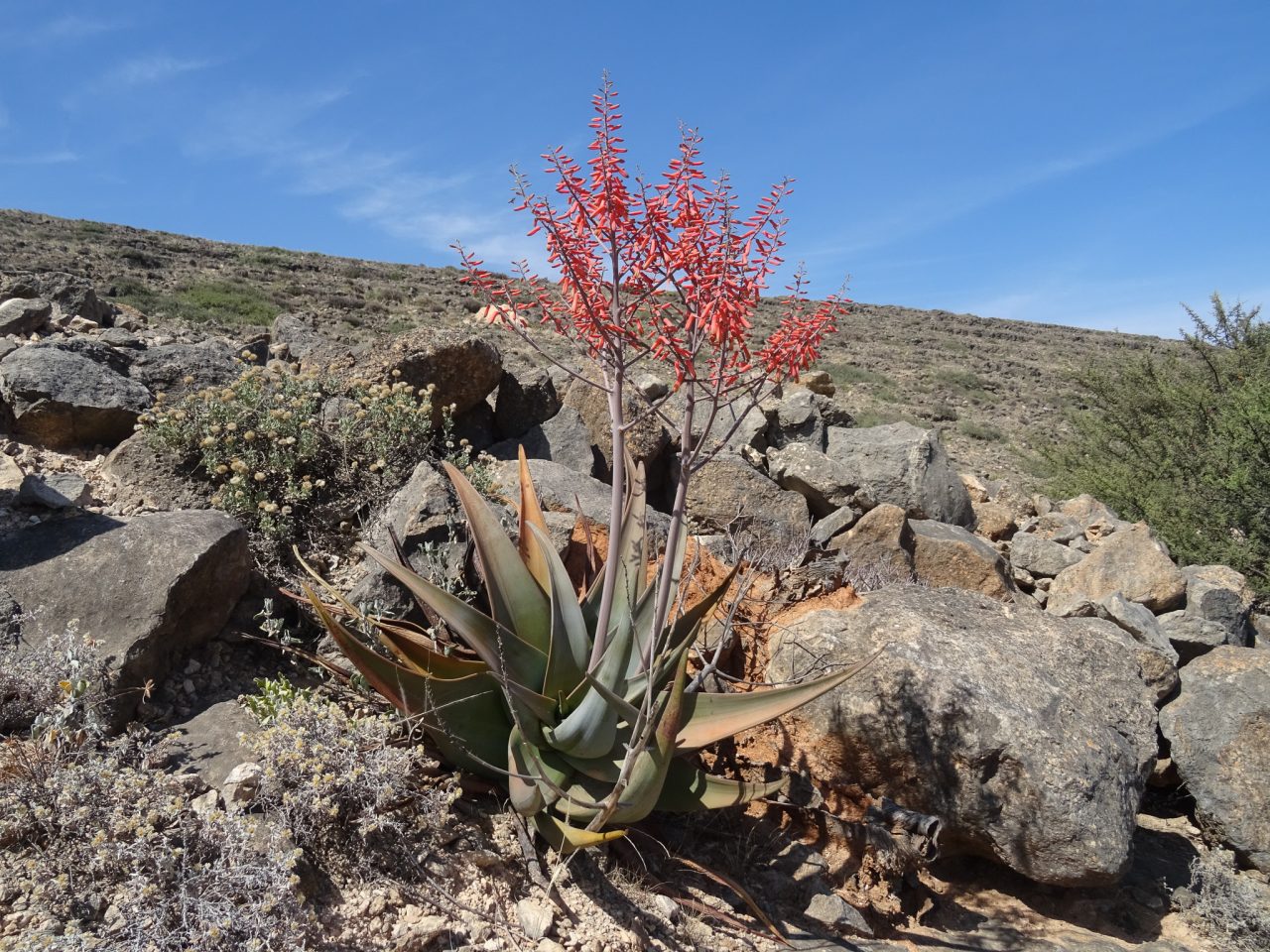Aloe praetermissa主要分布在阿曼西南部和也门东部的干燥热带地区,包括岩石坡地和灌木丛,海拔约500-1500米。该种生长在季节性干燥的热带生物群落中,常出现在岩石坡面或裂缝上,土壤贫瘠排水良好,受阿拉伯海季风影响,雨季短暂而旱季漫长,温度高,常在20-35°C之间。植株对排水要求极高,避免积水;它常与阿拉伯半岛其他耐旱植物共生,形成局部微生态系统。分布范围狭窄,总面积估计不到500平方公里,导致其对栖息地干扰敏感。