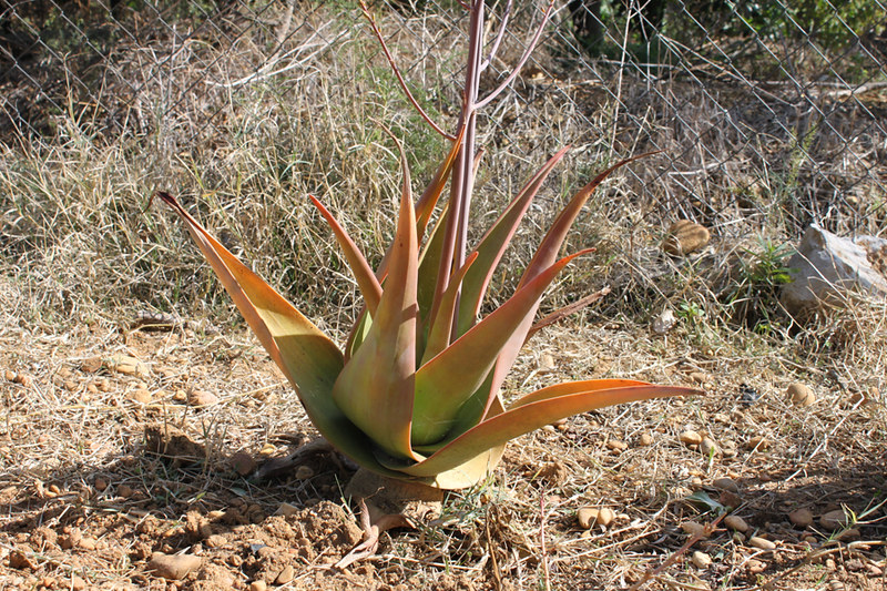 Aloe praetermissa通常为无茎植物,单生或偶有分株,形成莲座状叶丛,直径约30-50厘米(12-20英寸)。叶片宽阔、蓝绿色或灰绿色,光滑无齿,长约20-30厘米(8-12英寸),宽4-6厘米(1.6-2.4英寸),表面光滑蜡质,无斑点;在强光或干旱下呈红色调;边缘光滑无齿。叶片排列成开放莲座。花序从叶丛中心伸出,高约50-70厘米,多分枝;总状花序圆柱形,长约20-30厘米(8-12英寸);花朵橙黄色,长约2-3厘米(0.8-1.2英寸),管状密集排列。花期主要在南半球夏季(约7-8月)。果实为蒴果,长圆形,长约2厘米,直径1厘米;种子有翅。植株整体生长缓慢,长寿,变异性主要在叶色从蓝绿到红调,取决于环境。