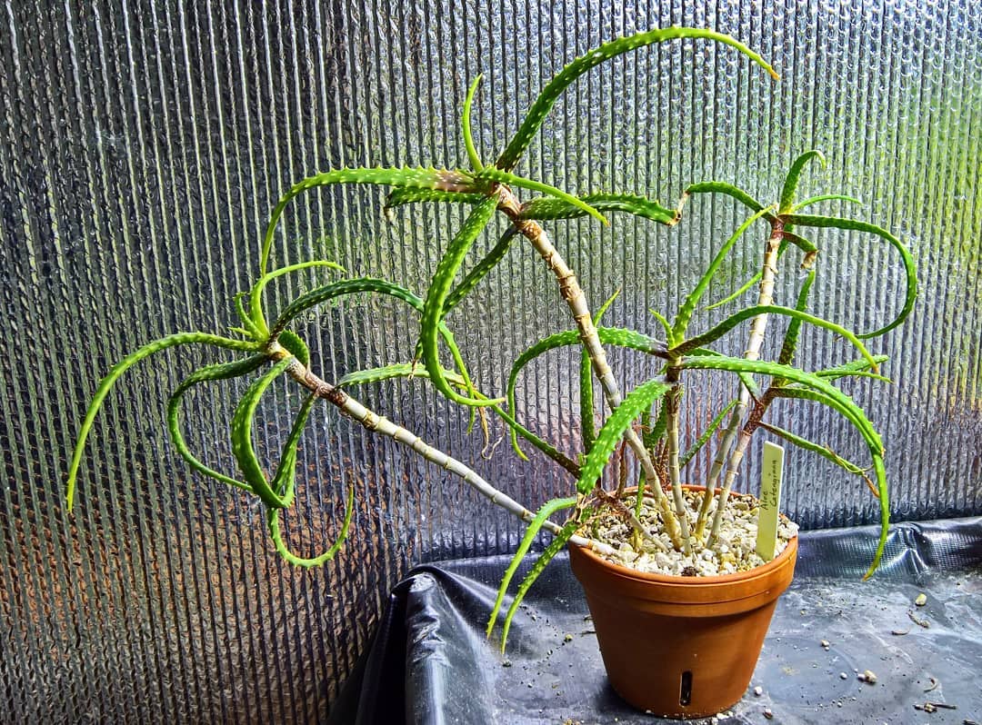是一种安哥拉西部至纳米比亚西北部特有芦荟属植物,原产于该地区的干燥热带生物群落。它是一种灌木状上升芦荟,有扩展的叶状枝条,长达1米。它在栽培中茁壮成长,并在秋季开花。作为一种岩生适应植物,它生长在干燥的热带生物群落中,适合作为观赏芦荟栽培,尤其在岩石花园或容器中,但野生种群易受栖息地破坏影响,已被评估为易危,需要优先选择人工繁殖来源以支持保护。