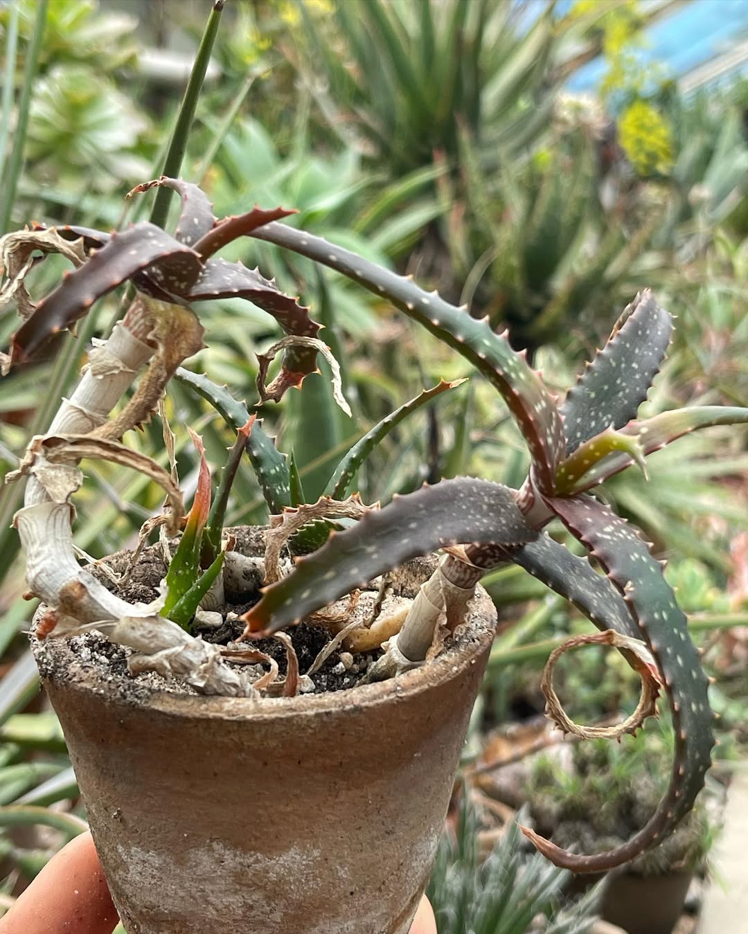 Aloe catengiana尚未在IUCN红色名录中正式评估,但作为非洲稀有特有种,其野生种群稀少,分布狭窄,易受栖息地破坏(如农业扩张、采矿和森林砍伐)、非法采集(用于园艺贸易)和气候变化影响。该种可能为易危(Vulnerable)或更高风险,受CITES附录II管制,禁止未经许可的国际贸易。保护措施包括原地保护(如建立微型保护区)和人工繁殖。非洲的生物多样性热点使其成为国际关注焦点。