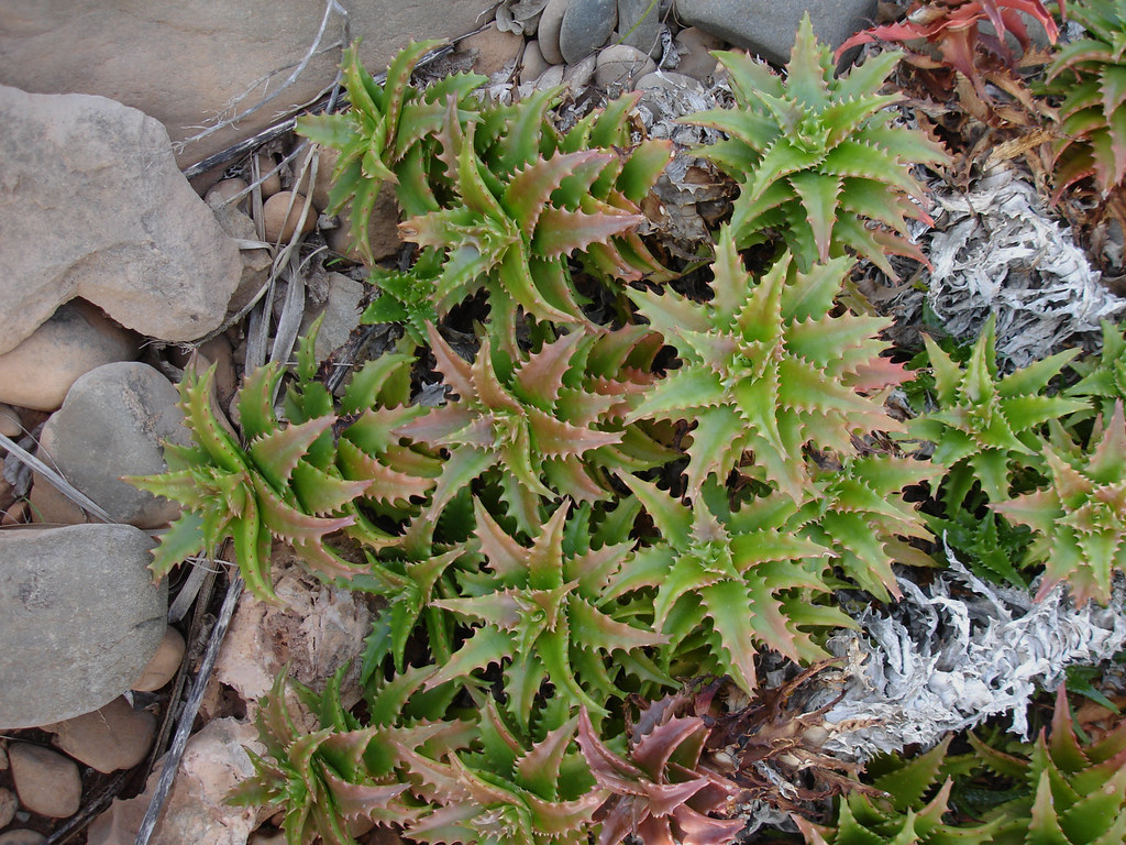 是一种西非热带草原特有芦荟属植物,原产于西非干燥草原和岩石地区,包括科特迪瓦到乍得,向南至安哥拉和纳米比亚北部。它是一种小型、多肉植物,形成茎less或短茎的莲座丛,以其肉质三角形叶片和尖锐齿缘而闻名。该物种于1914年由Alwin Berger首次描述。作为一种岩生适应植物,它生长在干燥的热带生物群落中,适合作为观赏芦荟栽培,尤其在岩石花园或容器中,但野生种群易受栖息地破坏影响,已被评估为无危。