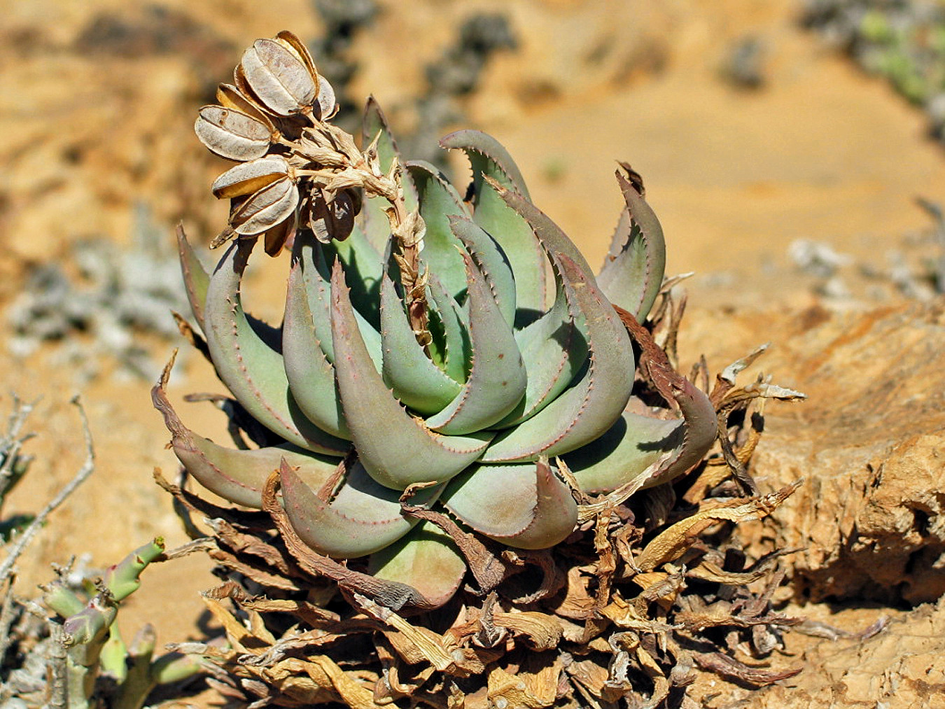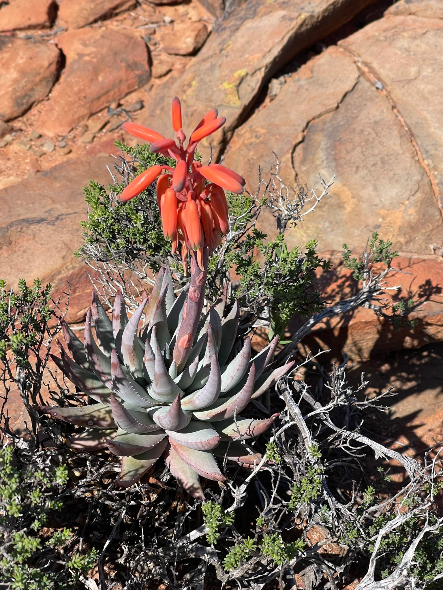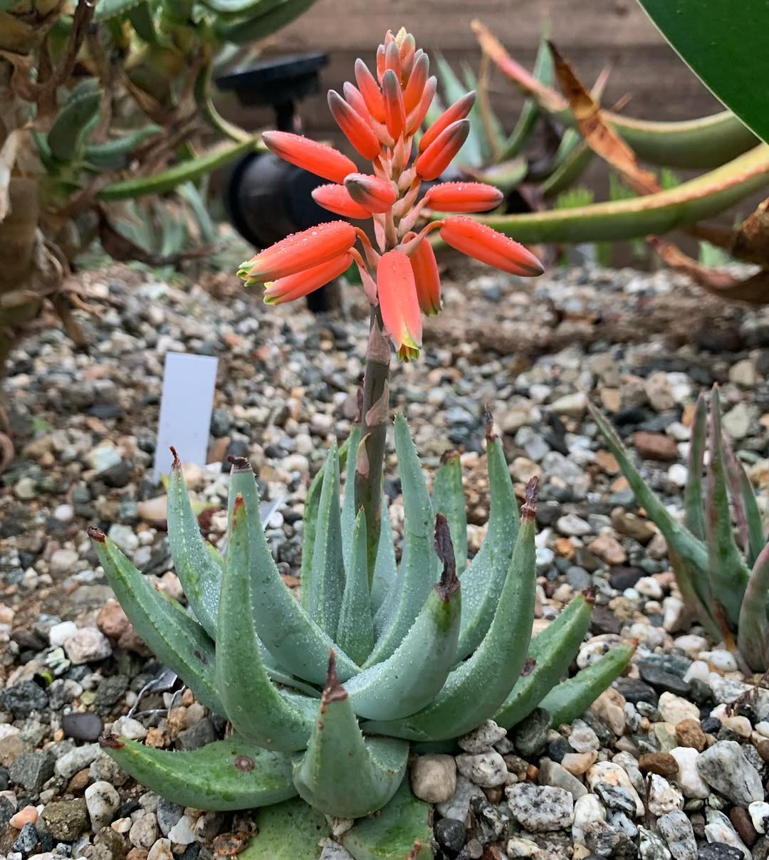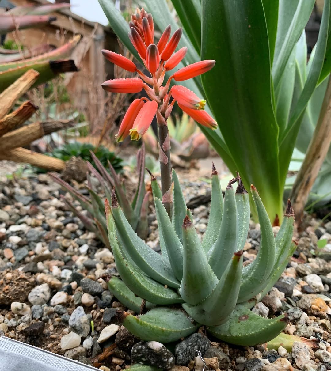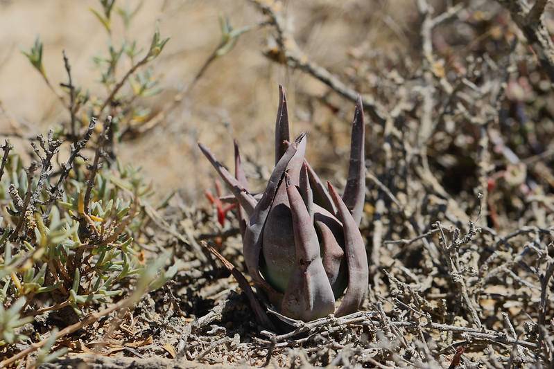 是一种南非特有芦荟属植物,原产于该国西北部干燥灌木丛和沙漠环境中。它是一种稀有矮生芦荟,高不超过250毫米,常单生或形成小簇,以其短而弯曲的叶片和冬季橙红色花序而闻名。该物种于1910年由Marloth首次描述,是南非西北部特有种,常生长在冬季雨区,适合作为观赏芦荟栽培,尤其在岩石花园或容器中,但野生种群易受栖息地破坏影响,已被评估为易危,需要优先选择人工繁殖来源以支持保护。