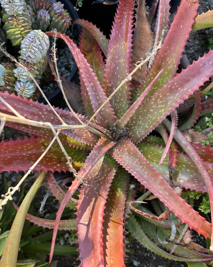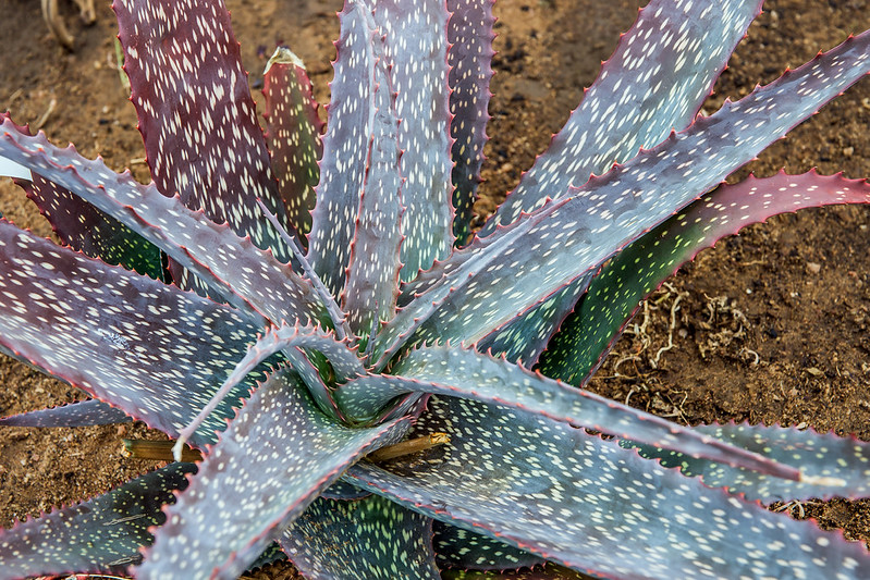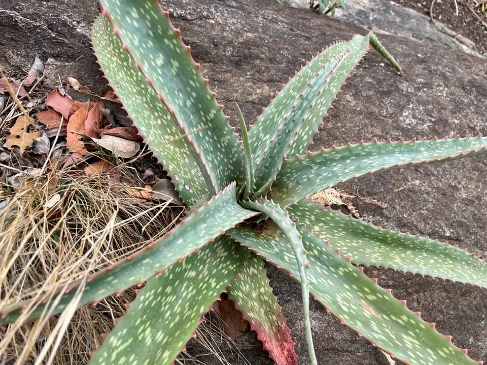 是一种乌干达特有芦荟属植物,原产于该国东北部的Karamoja Mountains,并延伸至南苏丹的Imatong Mountains。它是一种低矮、多肉植物,以其灰绿色至亮绿色长叶和红色边缘齿而闻名。该物种于2015年由T.C.Cole & T.G.Forrest首次描述。作为一种岩生适应植物,它生长在干燥的热带生物群落中,适合作为观赏芦荟栽培,尤其在岩石花园或容器中,但野生种群稀少且易受栖息地破坏影响,已被评估为易危,需要优先选择人工繁殖来源以支持保护。
